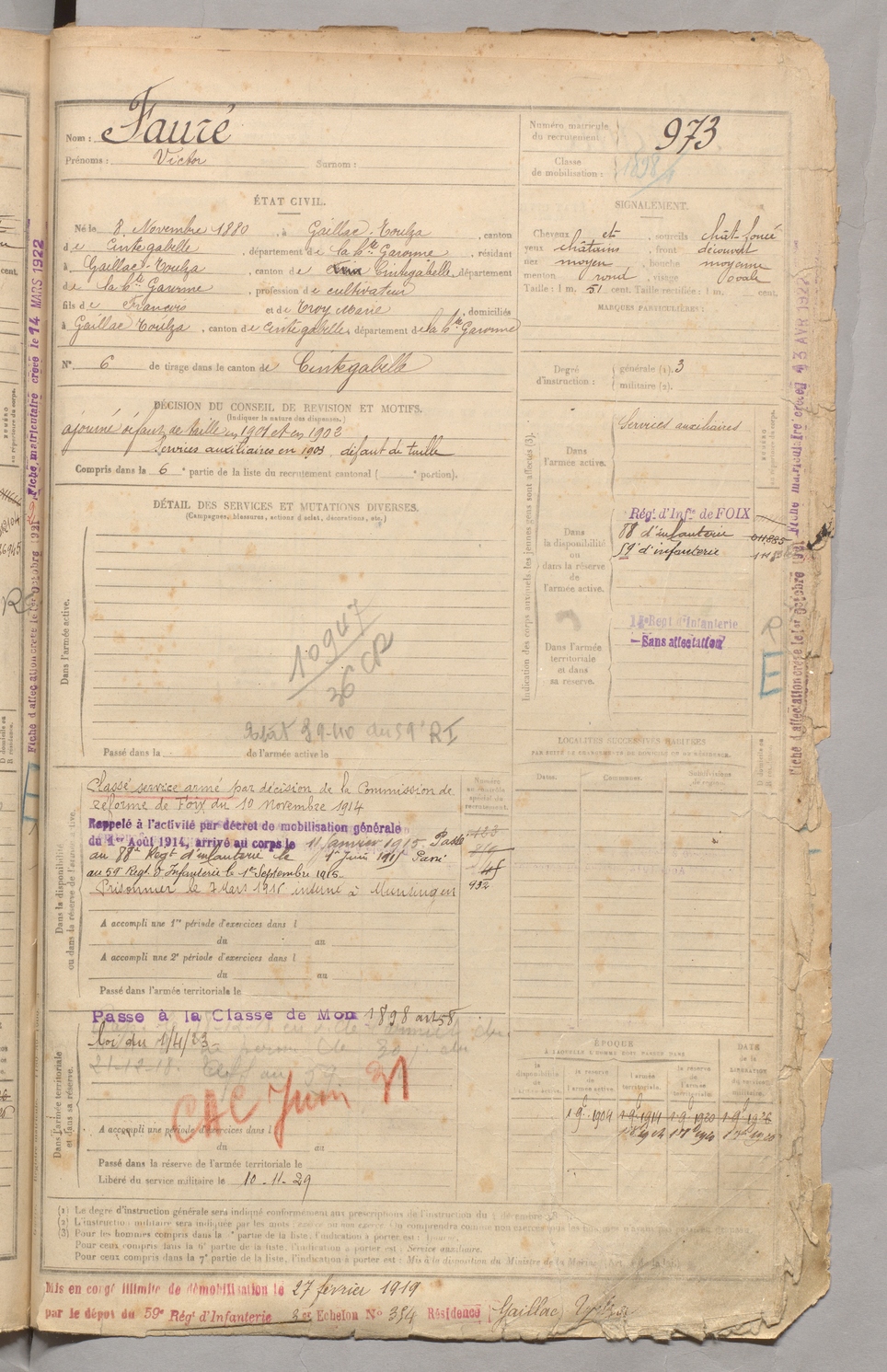 | Fauré | Victor | FOIX | 129 W 3 | 1900 | Gaillac-Toulza | Gaillac-Toulza | 973 |