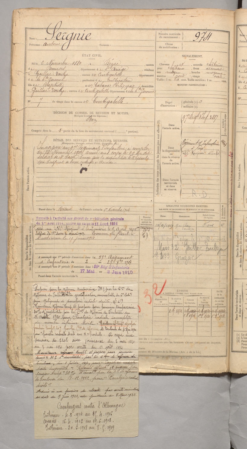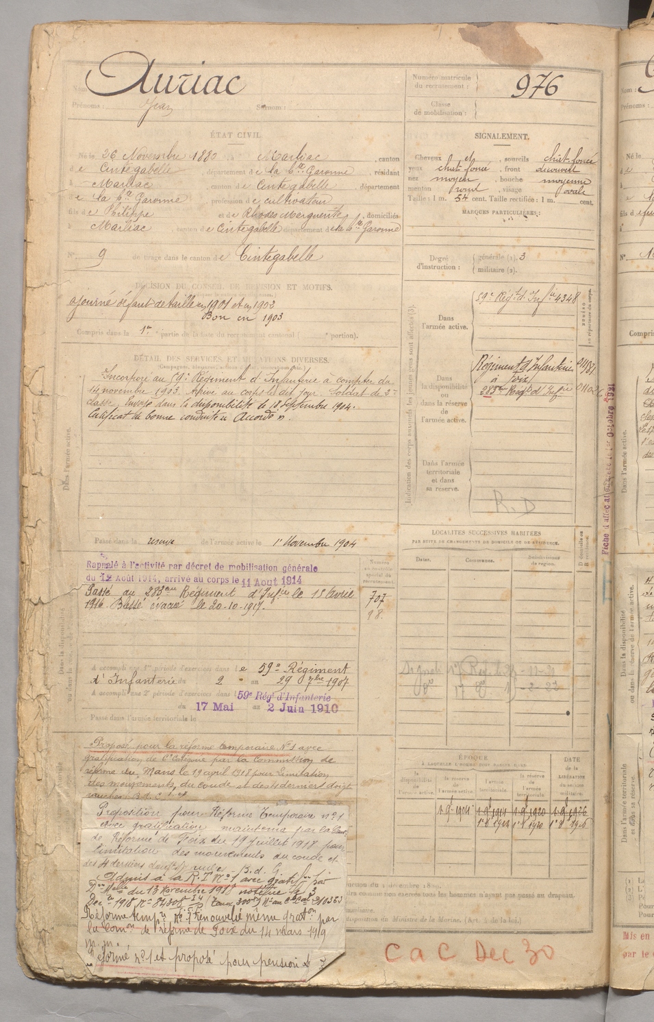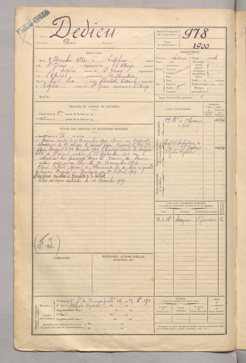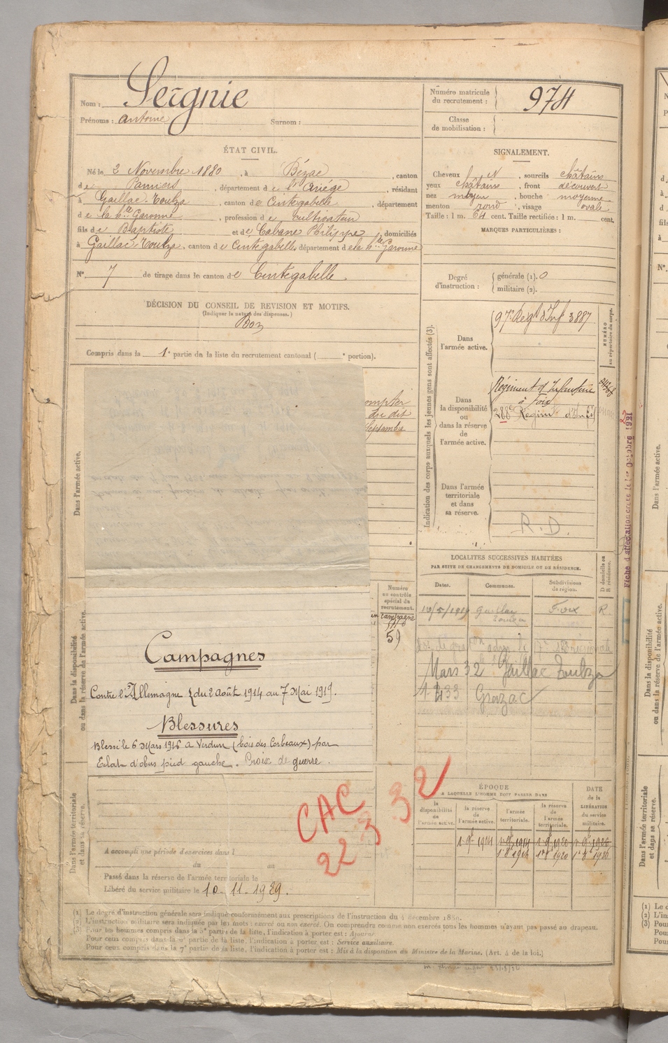 | Sergnie | Antoine | FOIX | 129 W 3 | 1900 | Bézac | Gaillac-Toulza | 974 |