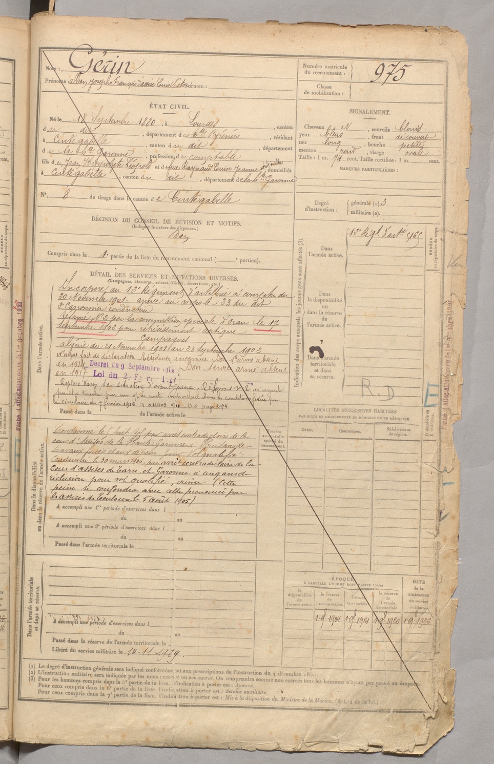 | Gérin | Alban Joseph François D'Assise Louis Victor | FOIX | 129 W 3 | 1900 | Lourdes | Cintegabelle | 975 |