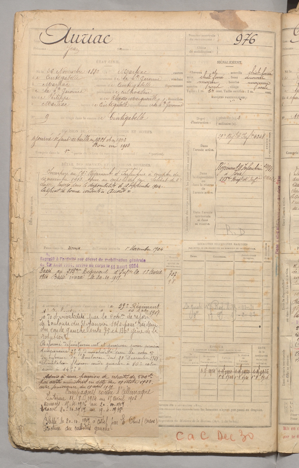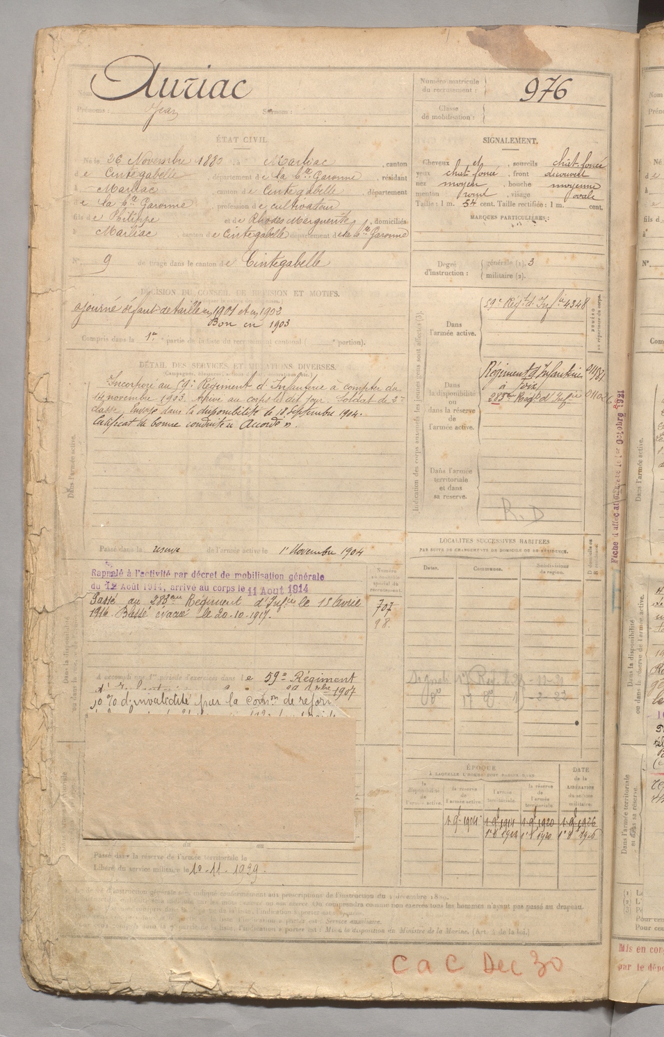 | Auriac | Jean | FOIX | 129 W 3 | 1900 | Marliac | Marliac | 976 |