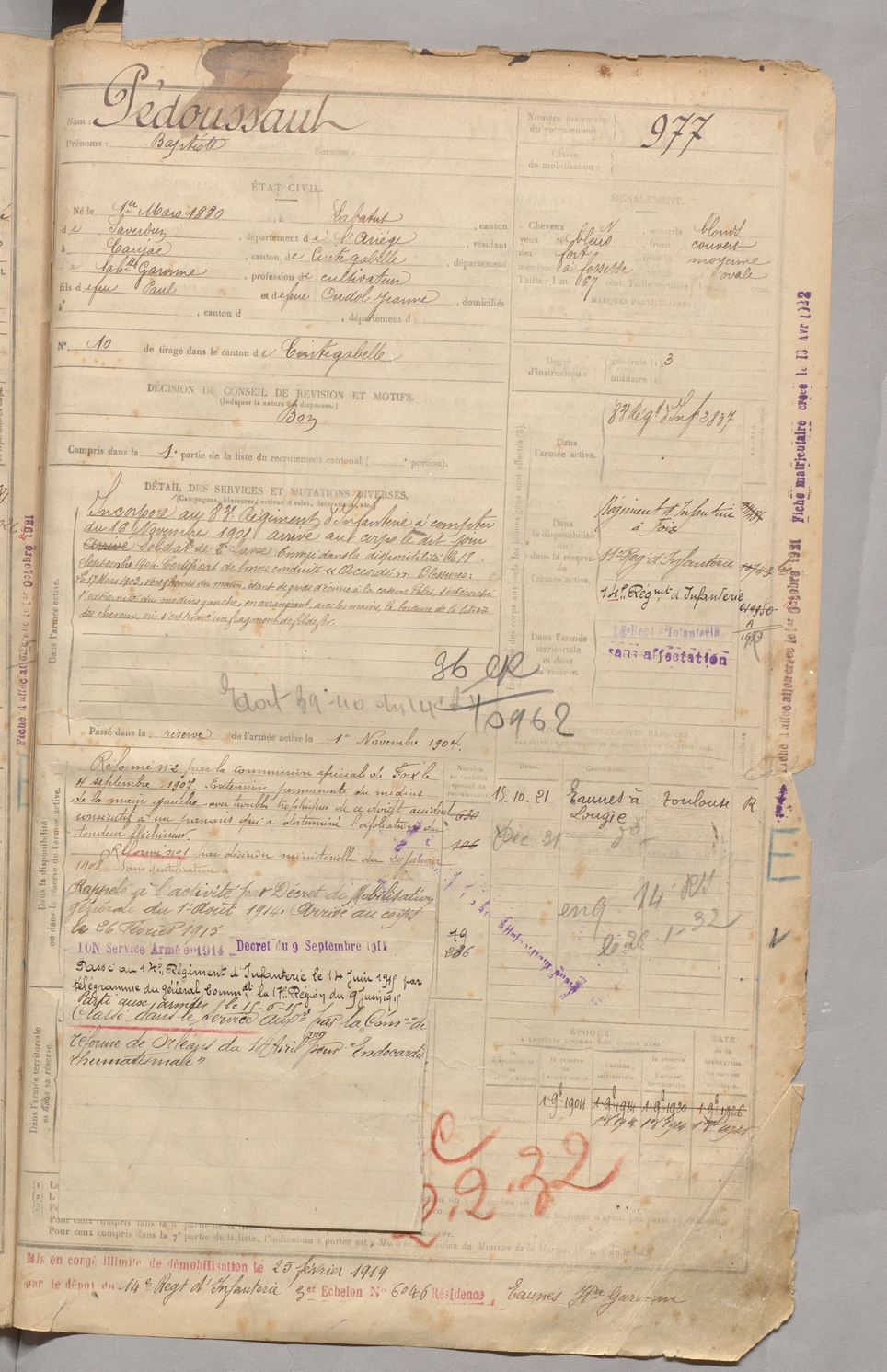 | Pédoussaut | Baptiste | FOIX | 129 W 3 | 1900 | Labatut | Caujac | 977 |