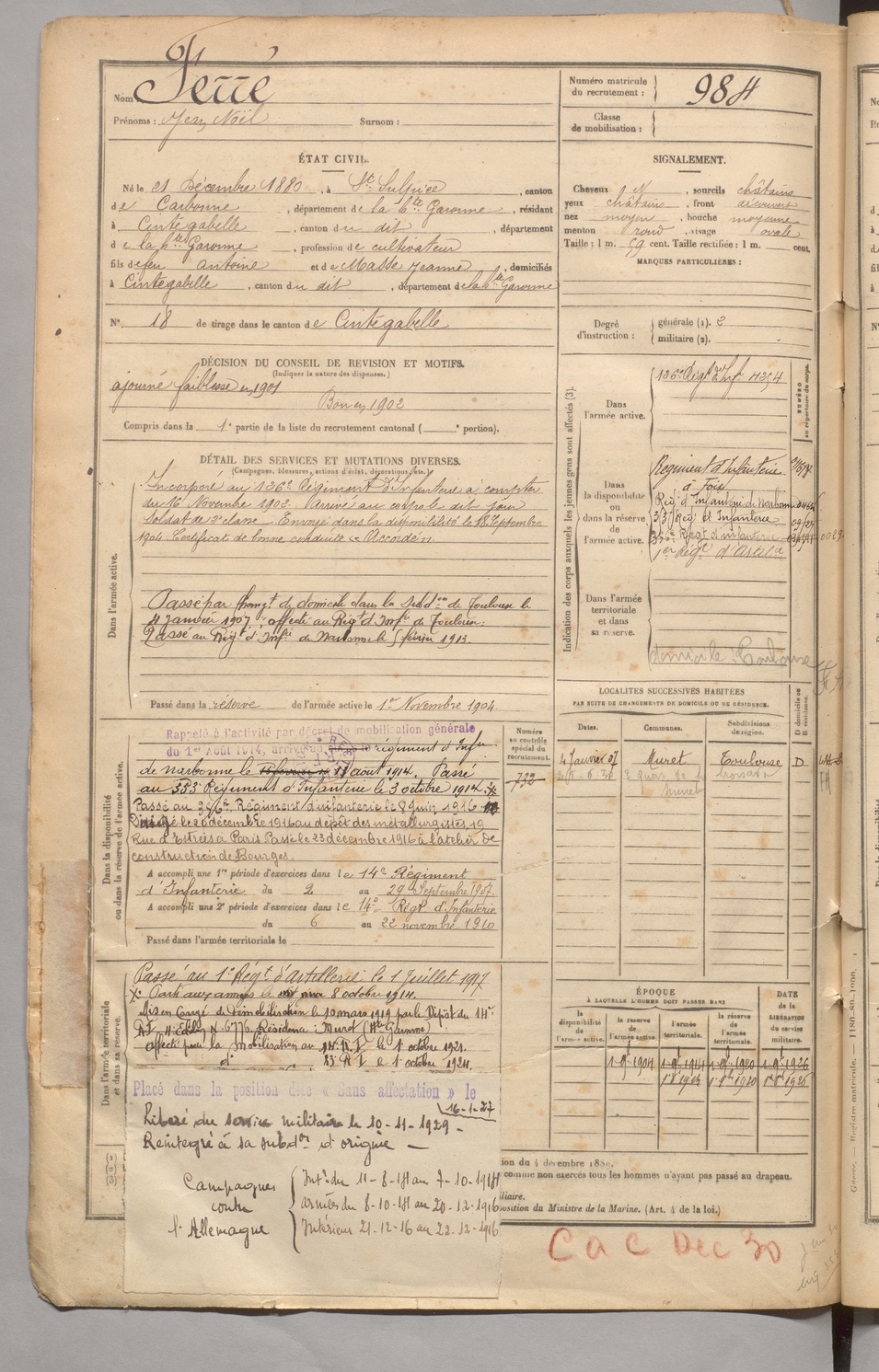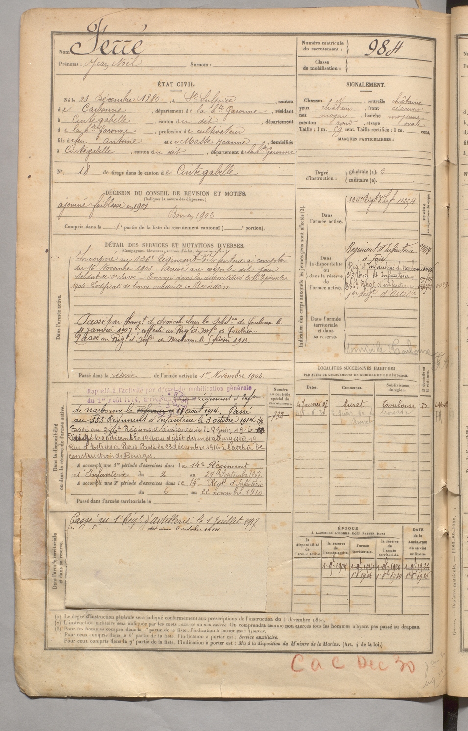 | Ferré | Jean Noël | FOIX | 129 W 3 | 1900 | Saint-Sulpice | Cintegabelle | 984 |