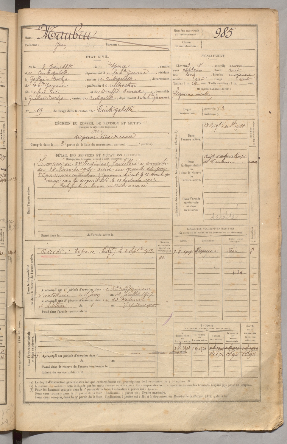 | Maubru | Jean | FOIX | 129 W 3 | 1900 | Esperce | Gaillac-Toulza | 985 |