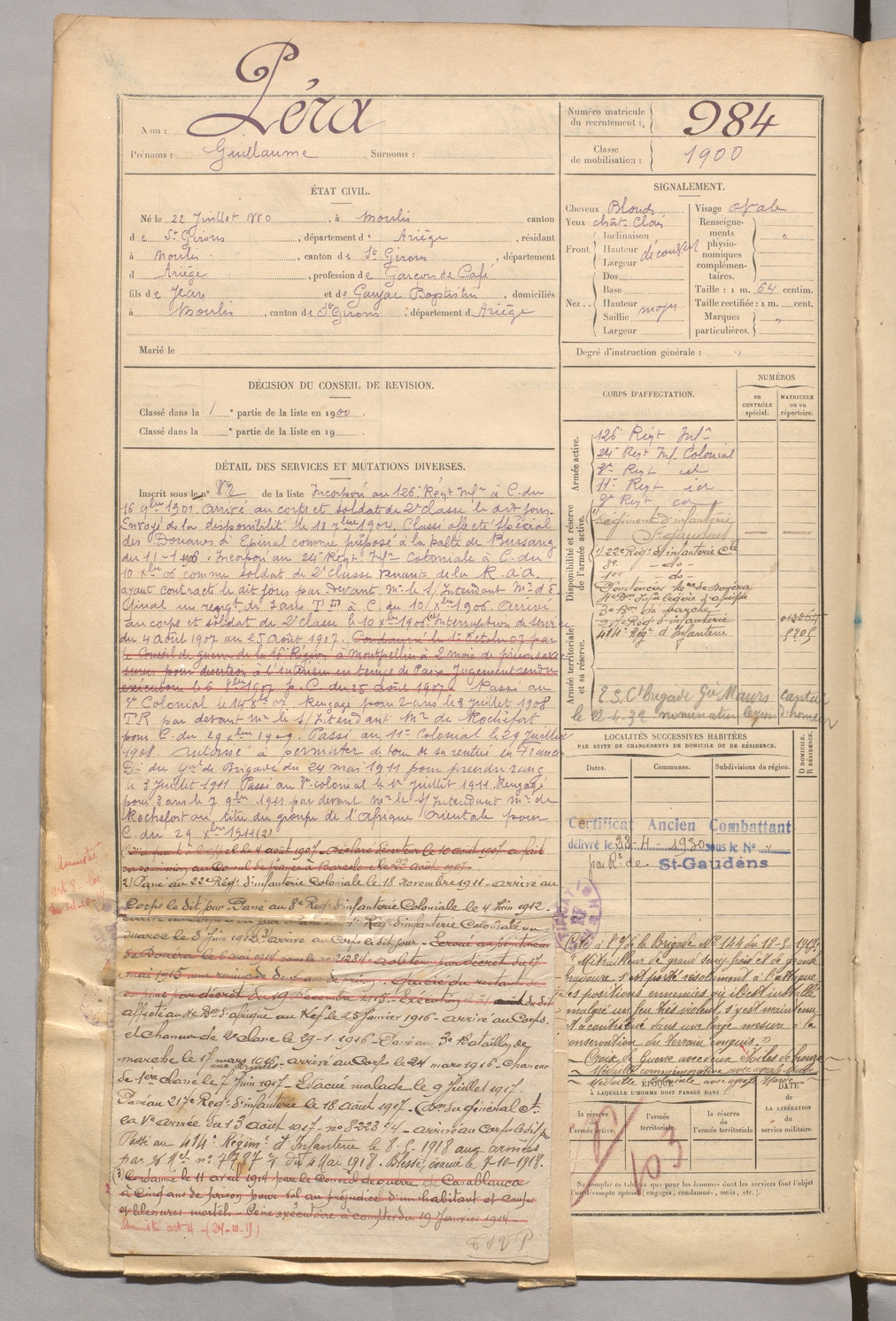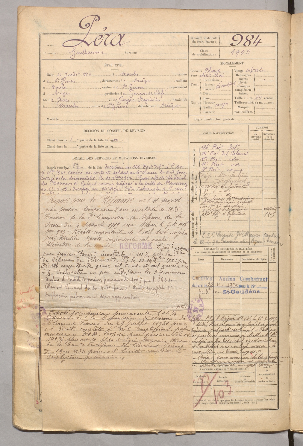 | Péra | Guillaume | FOIX | 129 W 5 | 1900 | Moulis | Moulis | 984 |