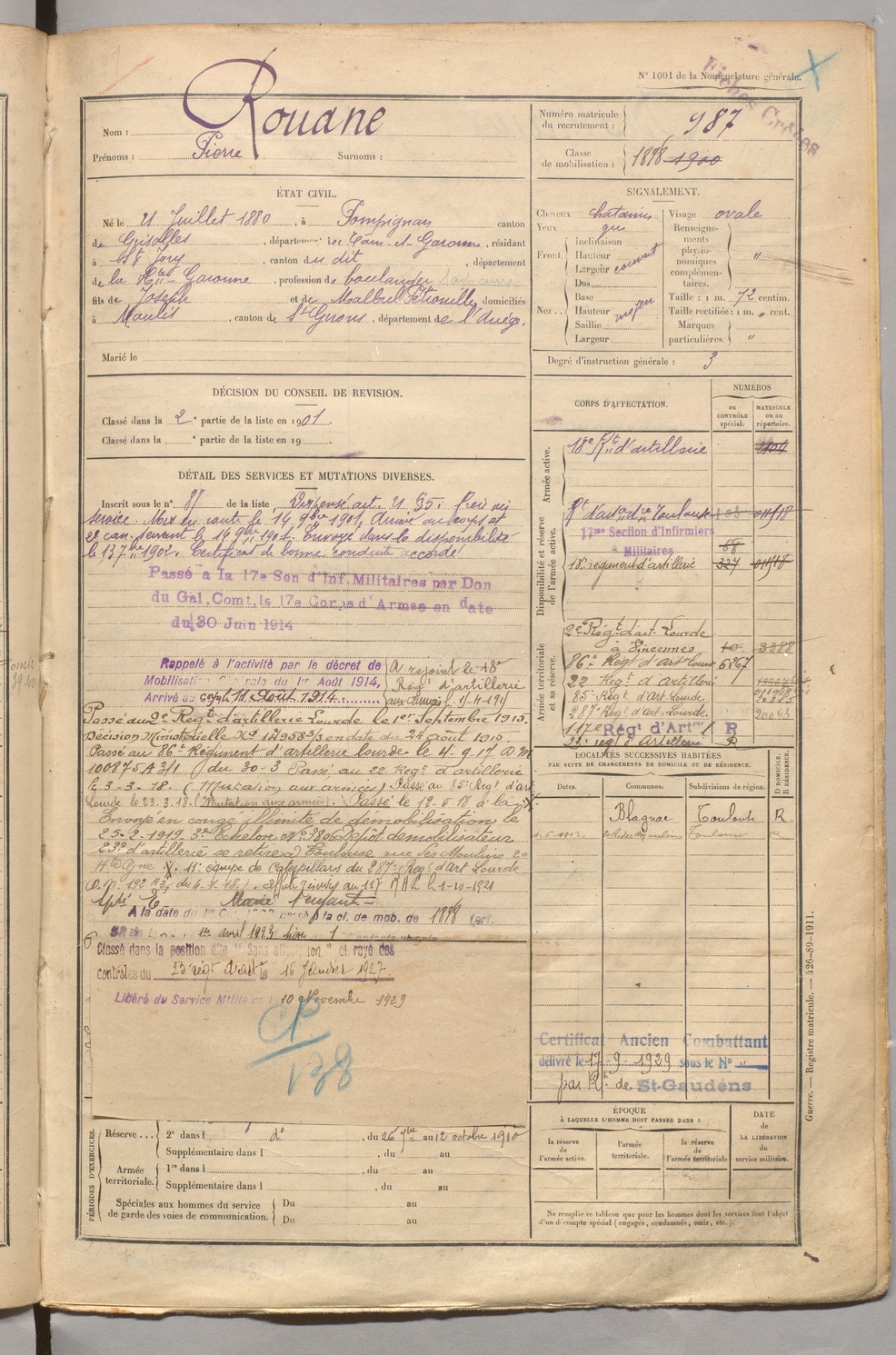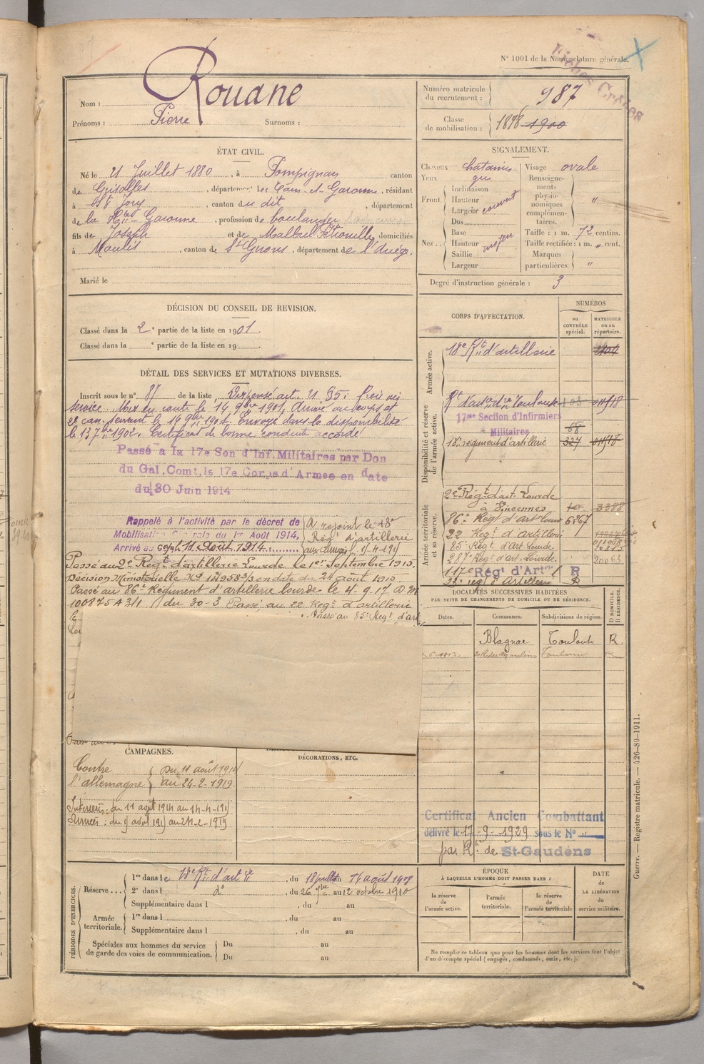 | Rouane | Pierre | FOIX | 129 W 5 | 1900 | Pompignan | Saint-Jory | 987 |