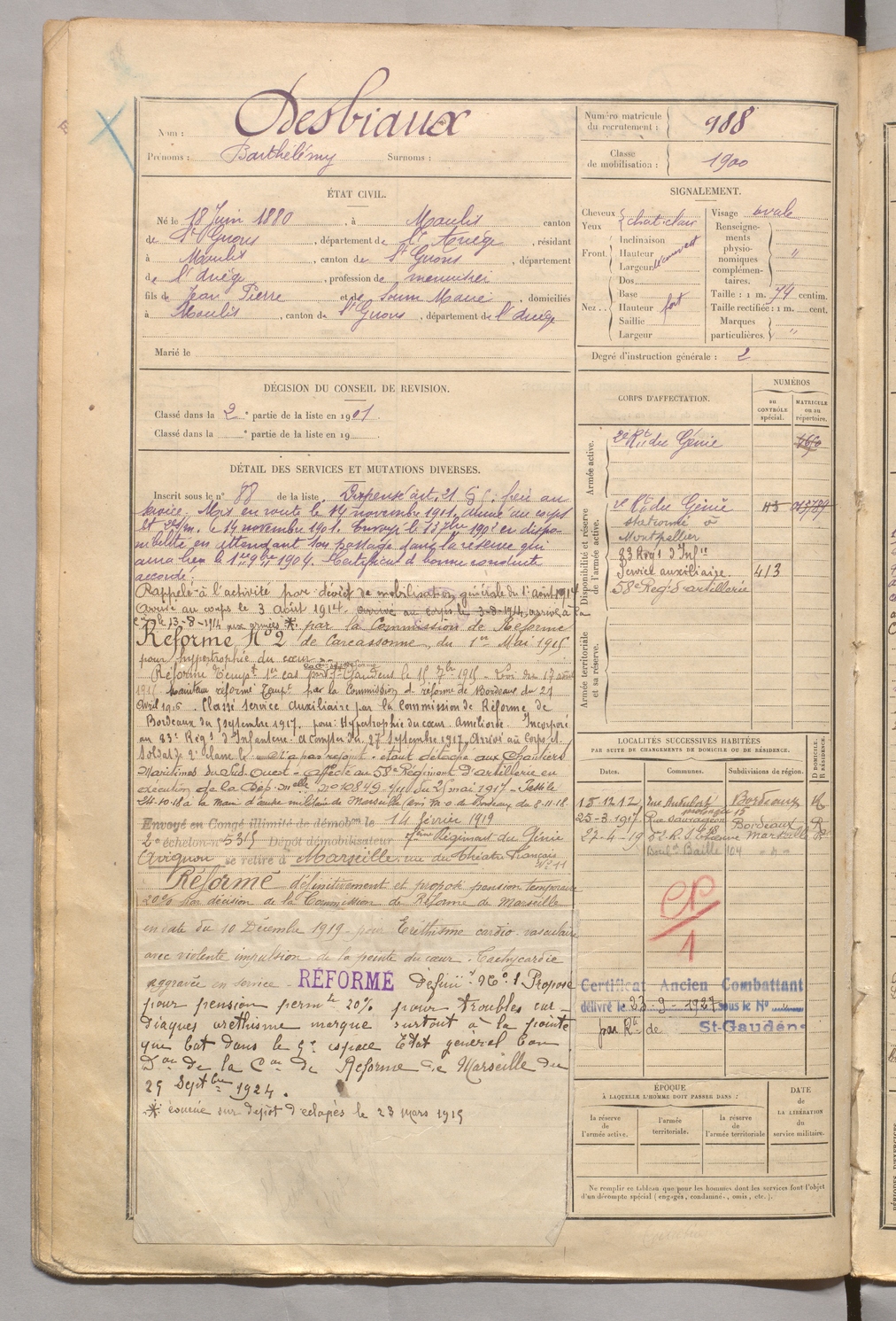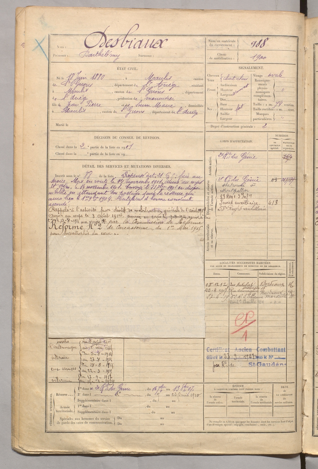 | Desbiaux | Barthélémy | FOIX | 129 W 5 | 1900 | Moulis | Moulis | 988 |