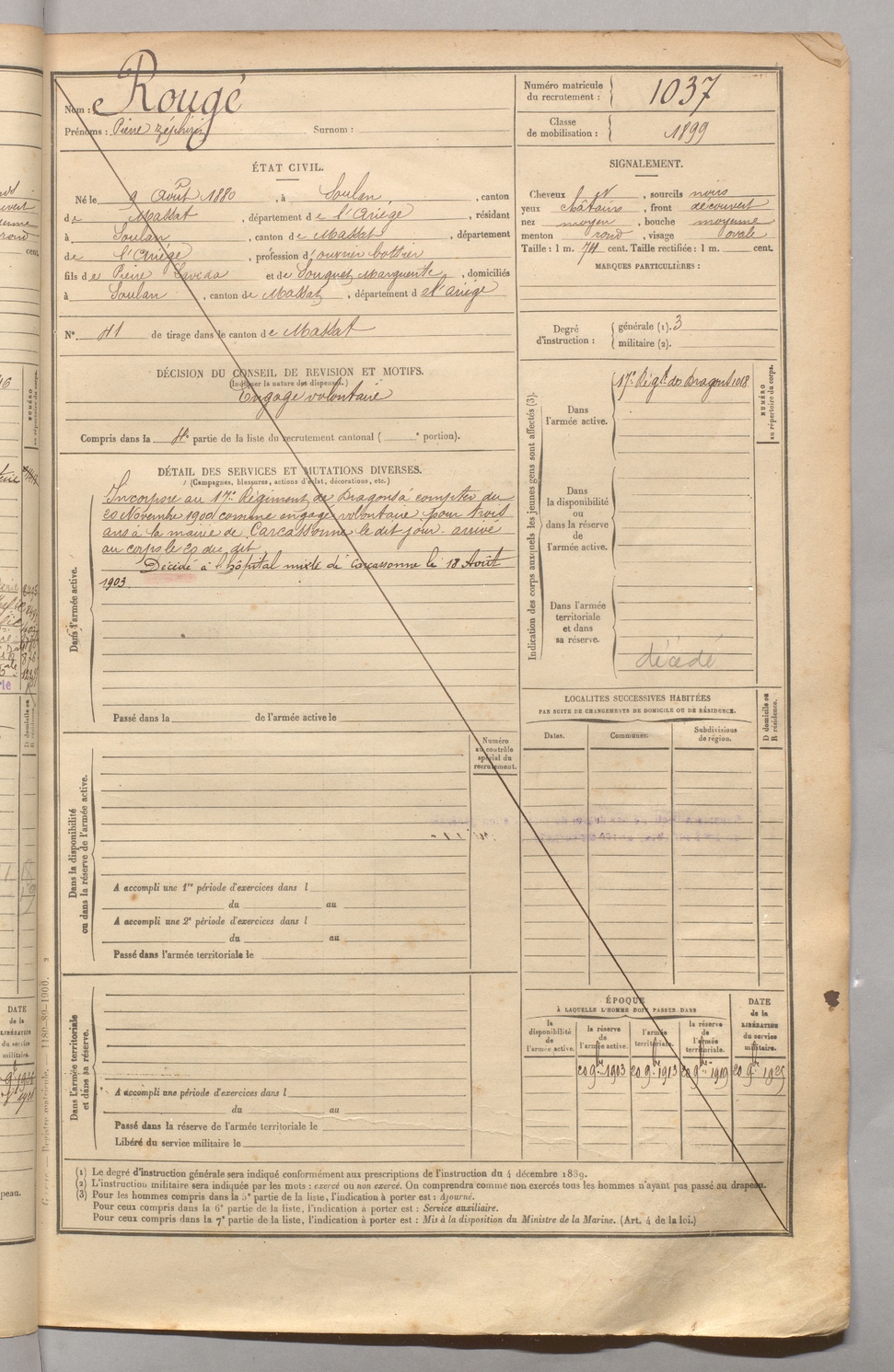 | Rougé | Pierre Zéphirin | FOIX | 129 W 4 | 1900 | Soulan | Soulan | 1037 |