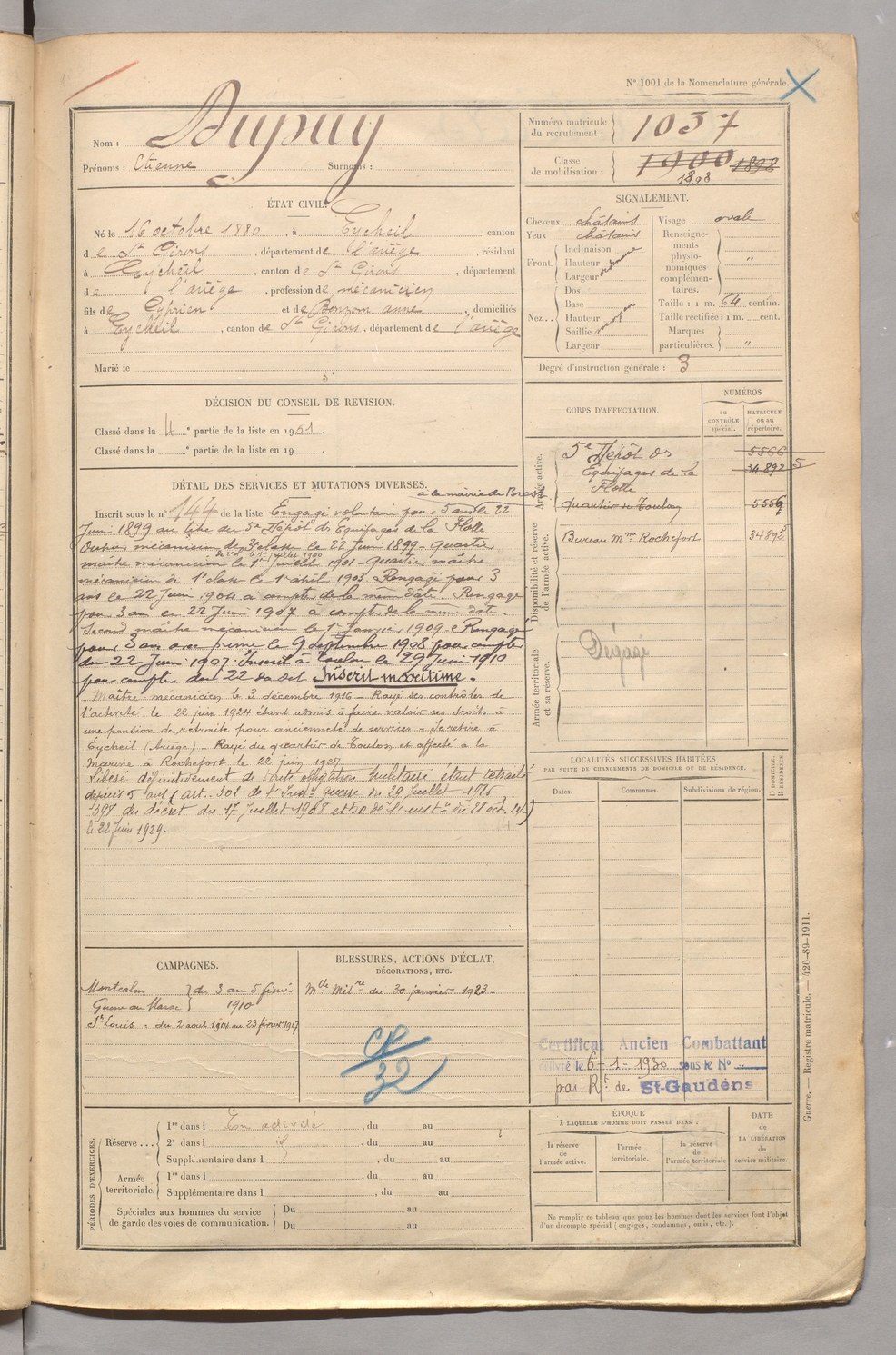 | Dupuy | Etienne | FOIX | 129 W 5 | 1900 | Eycheil | Eycheil | 1037 |
