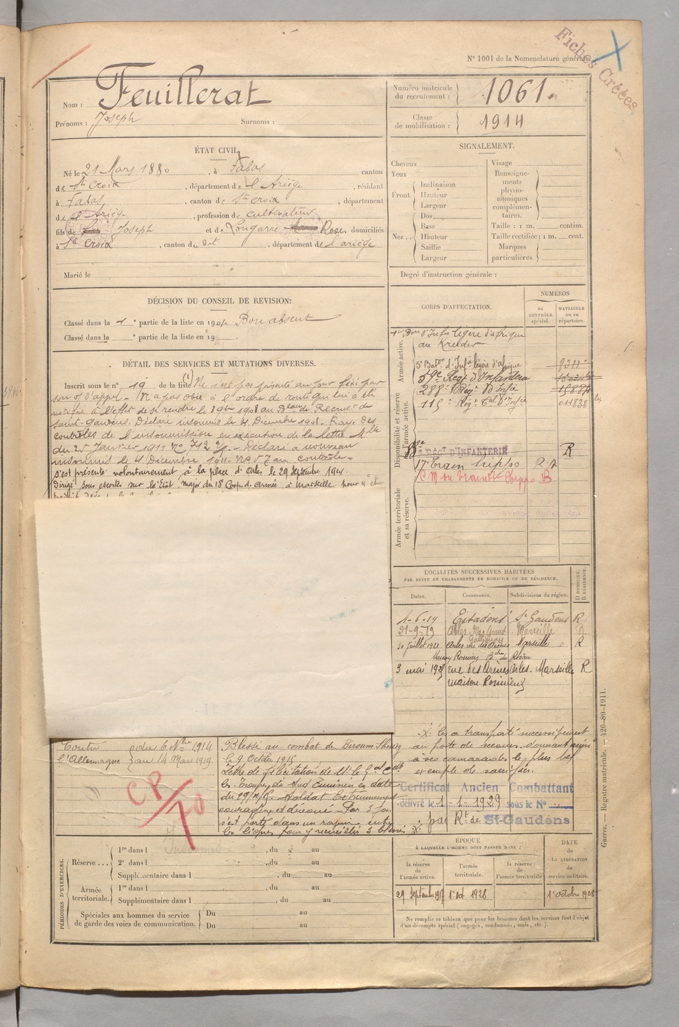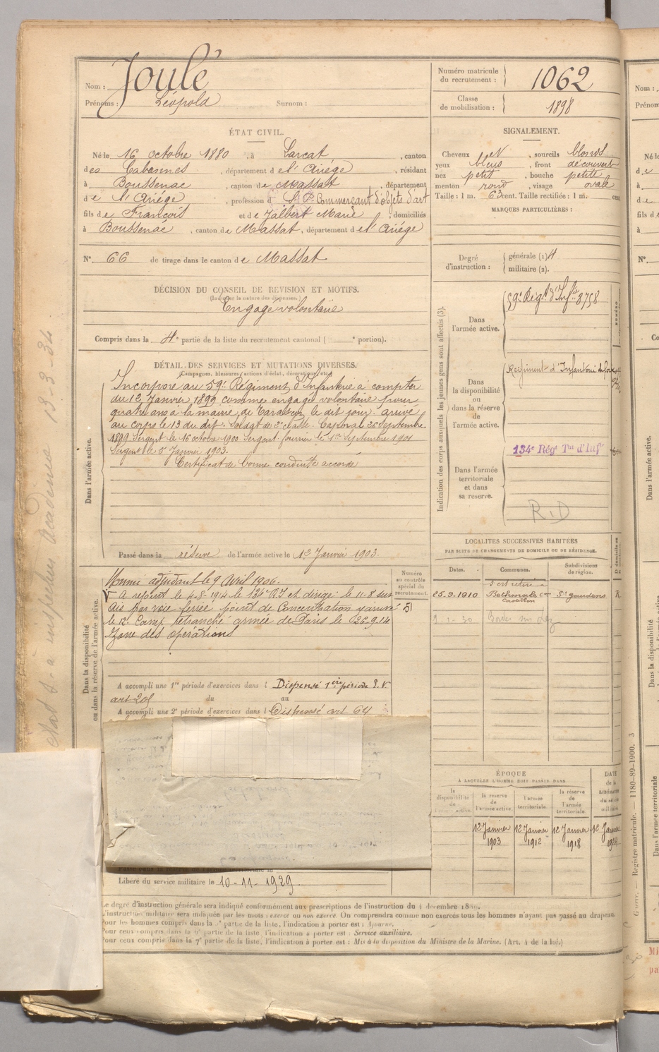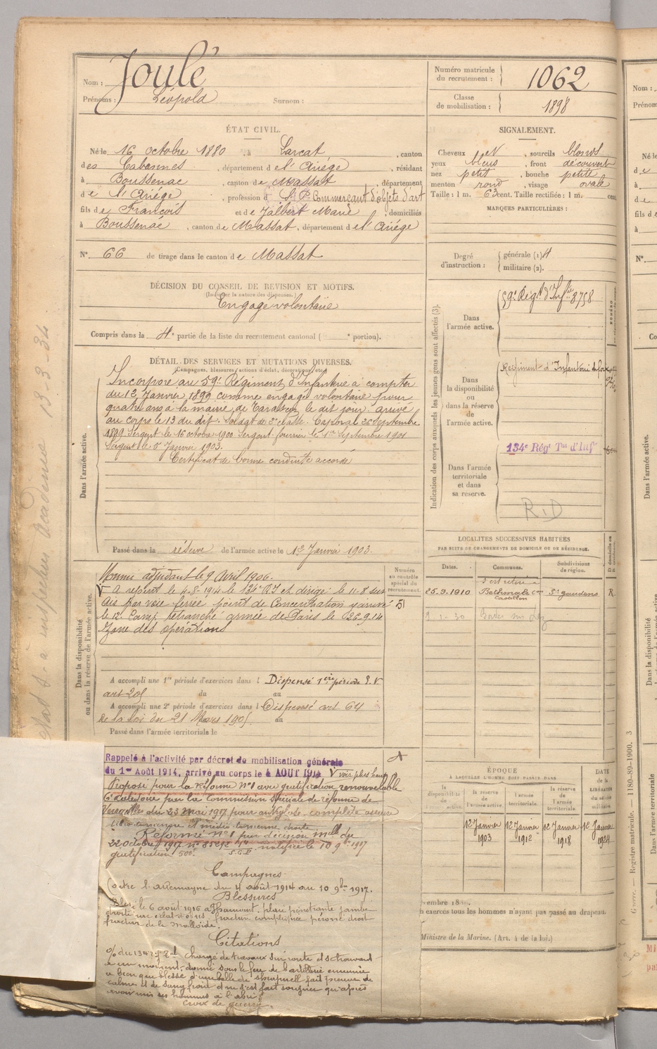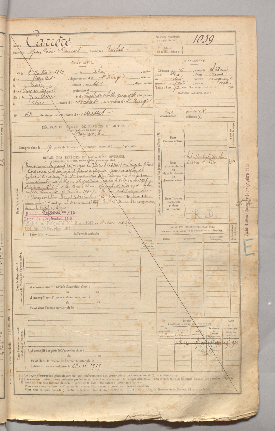 | Carrère | Jean Pierre François dit Reulat | FOIX | 129 W 4 | 1900 | Aleu | Riom | 1059 |