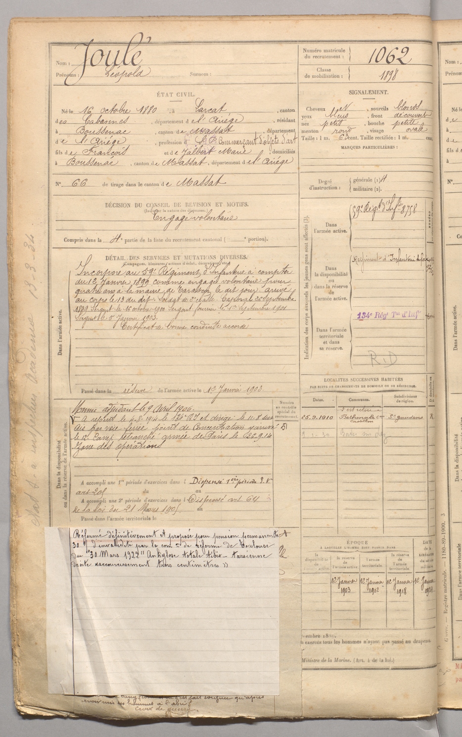 | Joulé | Léopold | FOIX | 129 W 4 | 1900 | Larcat | Boussenac | 1062 |