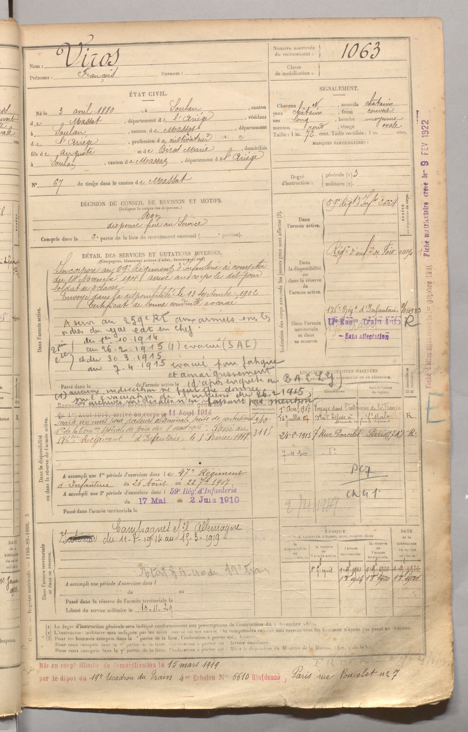 | Viros | François | FOIX | 129 W 4 | 1900 | Soulan | Soulan | 1063 |
