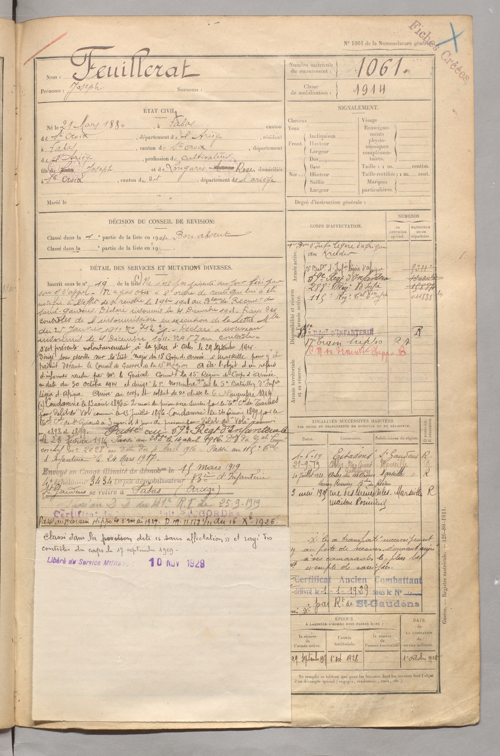 | Feuillerat | Joseph | FOIX | 129 W 5 | 1900 | Fabas | Fabas | 1061 |