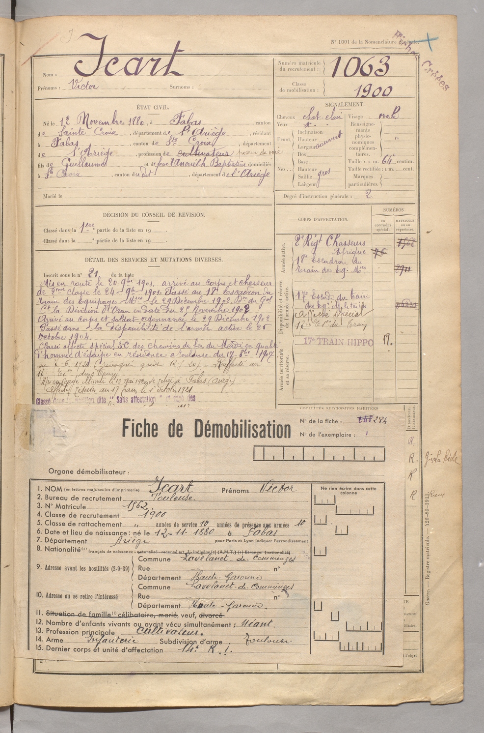 | Icart | Victor | FOIX | 129 W 5 | 1900 | Fabas | Fabas | 1063 |
