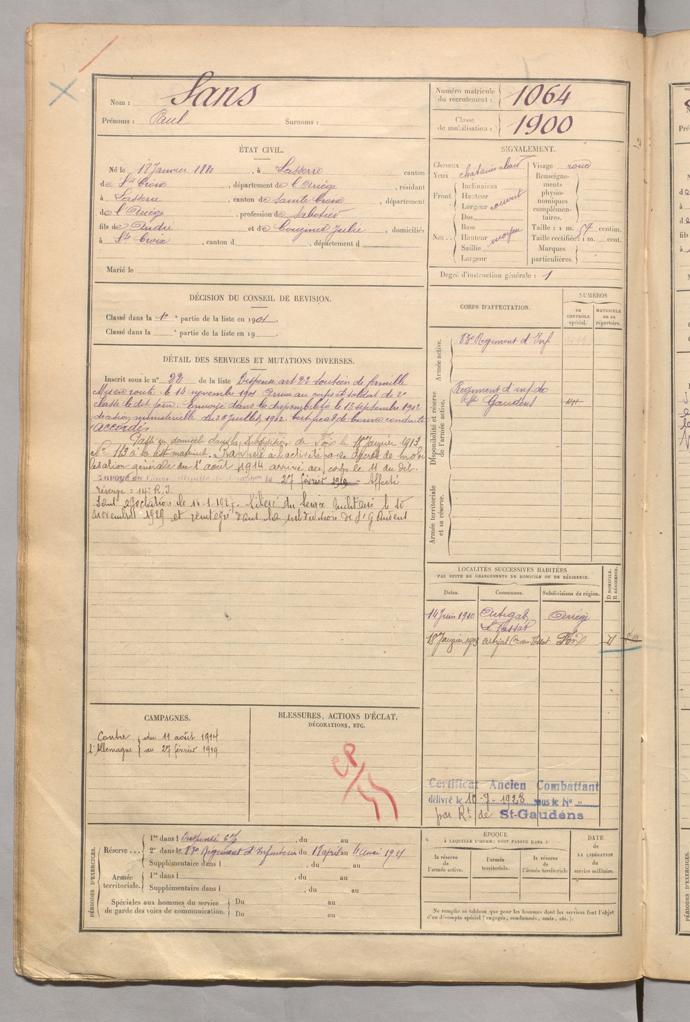 | Sans | Paul | FOIX | 129 W 5 | 1900 | Lasserre | Lasserre | 1064 |