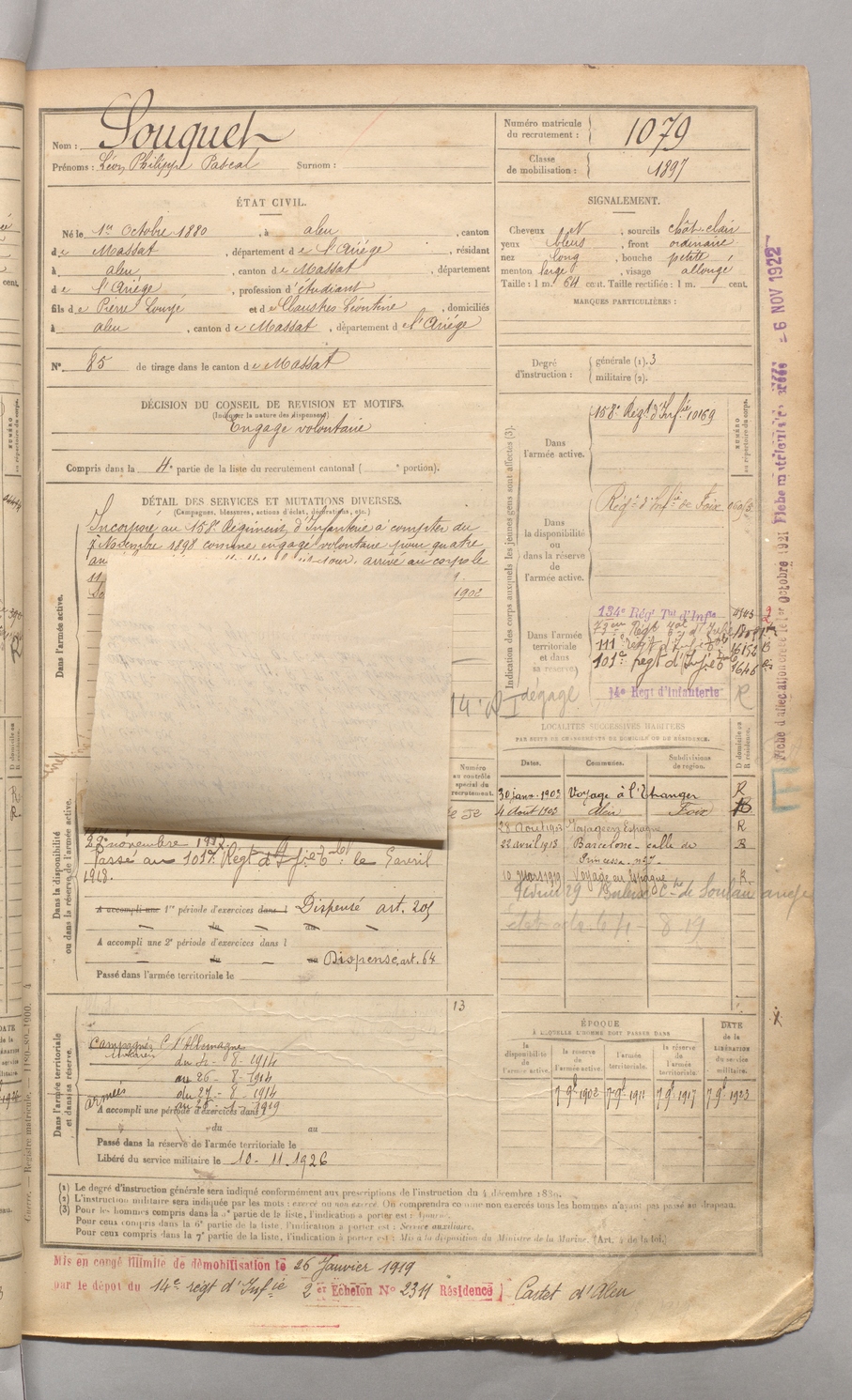 | Souquet | Léon Philippe Pascal | FOIX | 129 W 4 | 1900 | Aleu | Aleu | 1079 |
