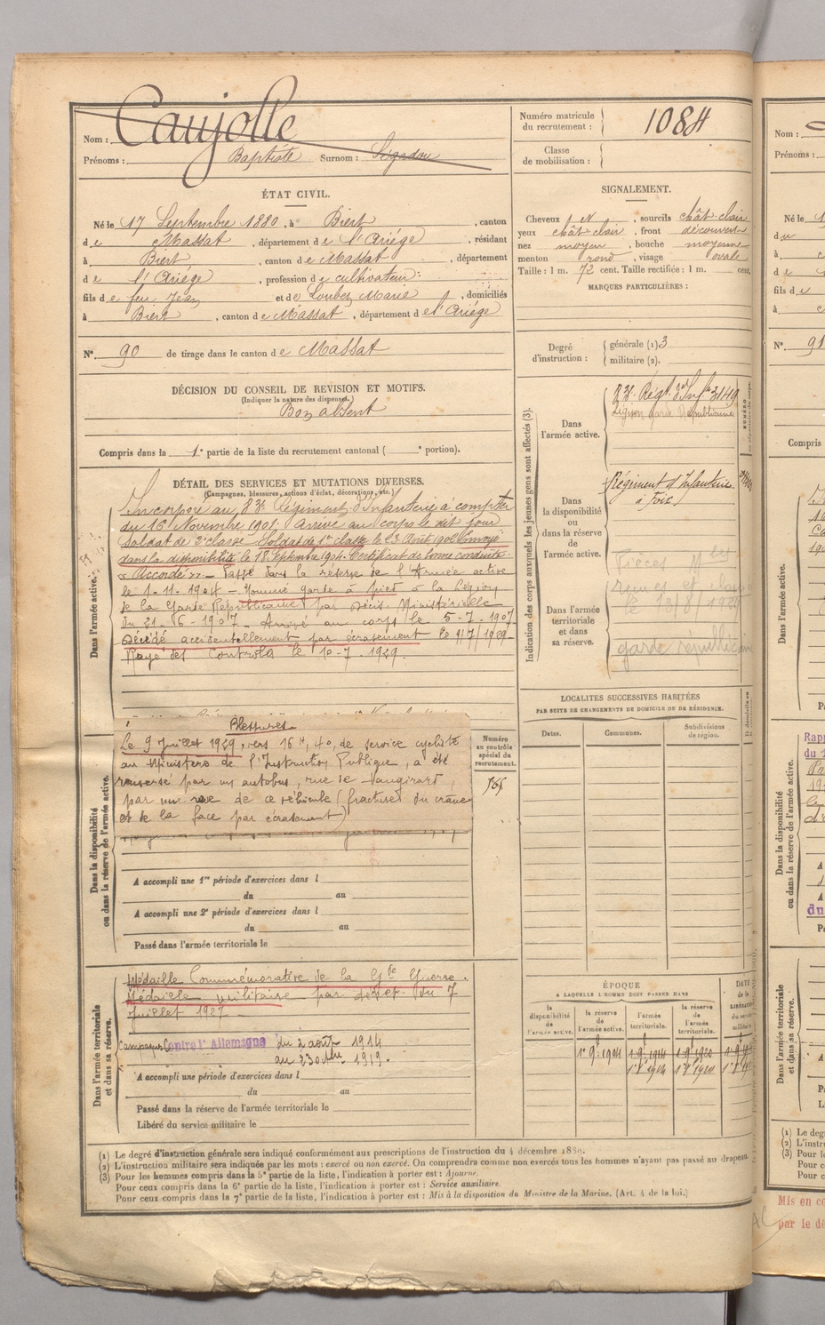 | Caujolle | Baptiste dit Ségadou | FOIX | 129 W 4 | 1900 | Biert | Biert | 1084 |