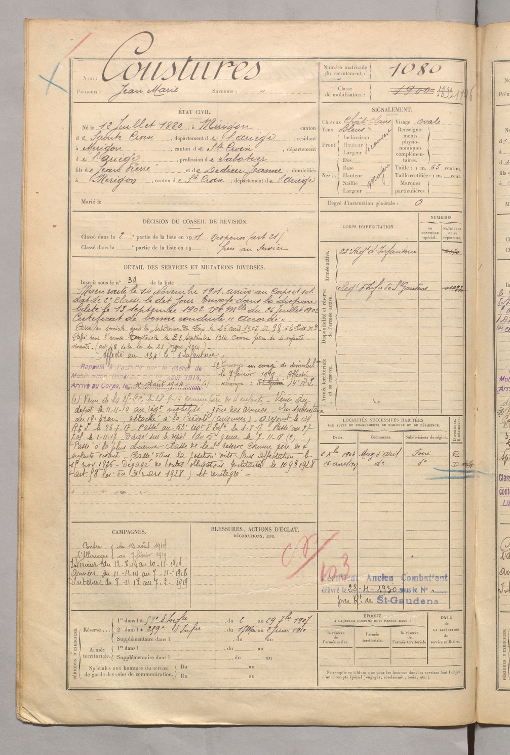 | Coustures | Jean Marie | FOIX | 129 W 5 | 1900 | Mérigon | Mérigon | 1080 |
