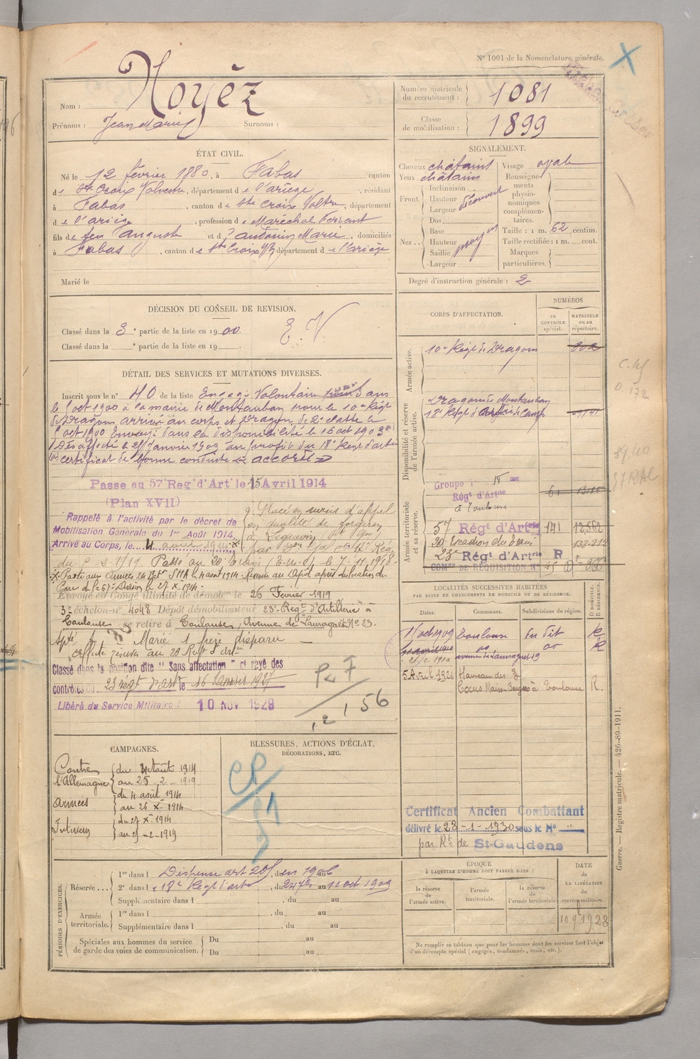 | Noyèz | Jean Marie | FOIX | 129 W 5 | 1900 | Fabas | Fabas | 1081 |