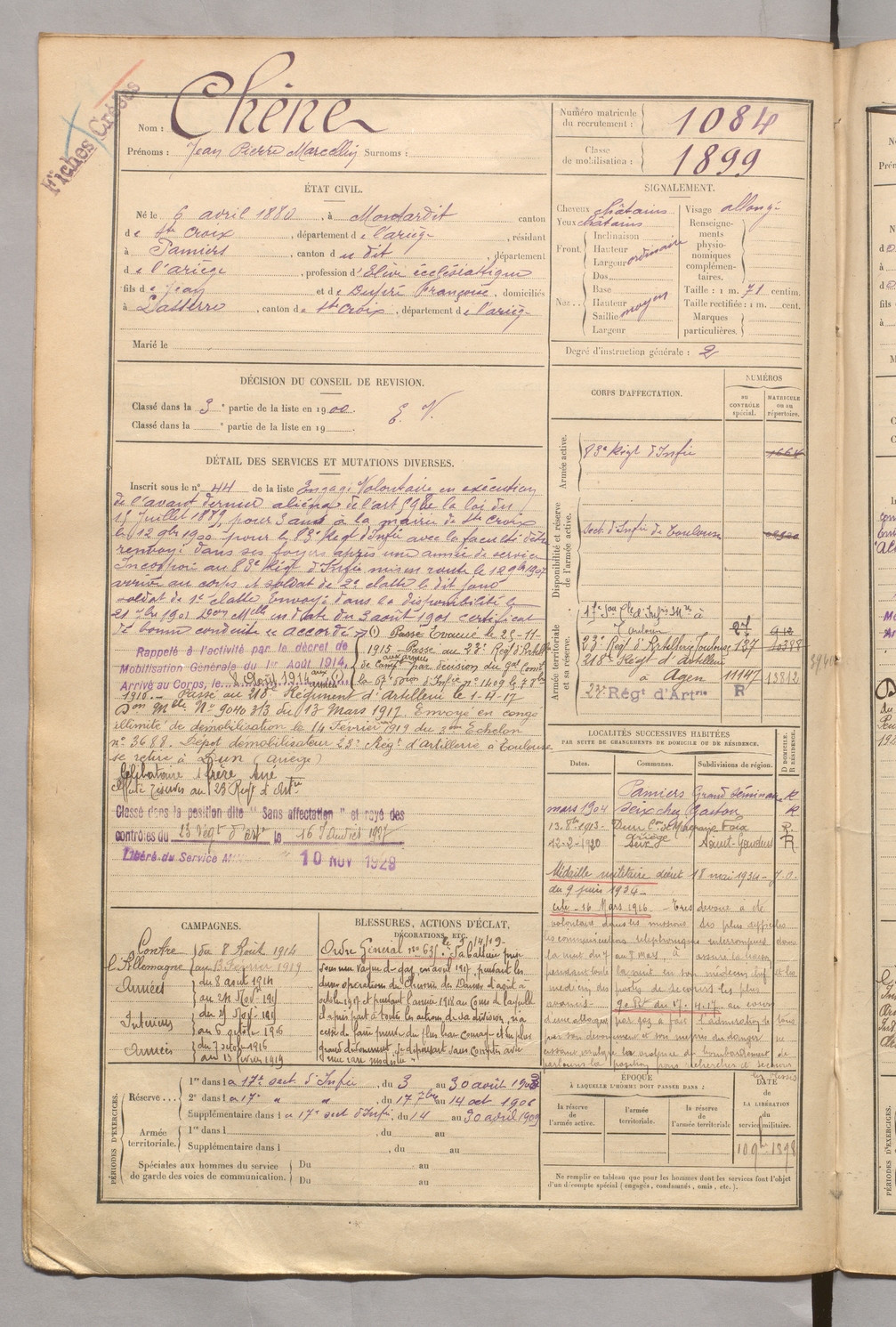 | Chène | Jean Pierre Marcellin | FOIX | 129 W 5 | 1900 | Montardit | Pamiers | 1084 |