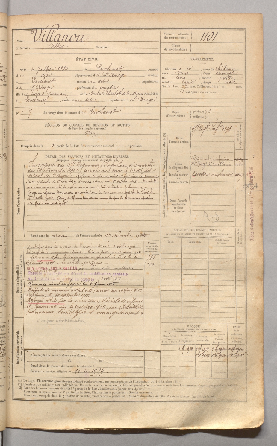 | Villanou | Albert | FOIX | 129 W 4 | 1900 | Lavelanet | Lavelanet | 1101 |