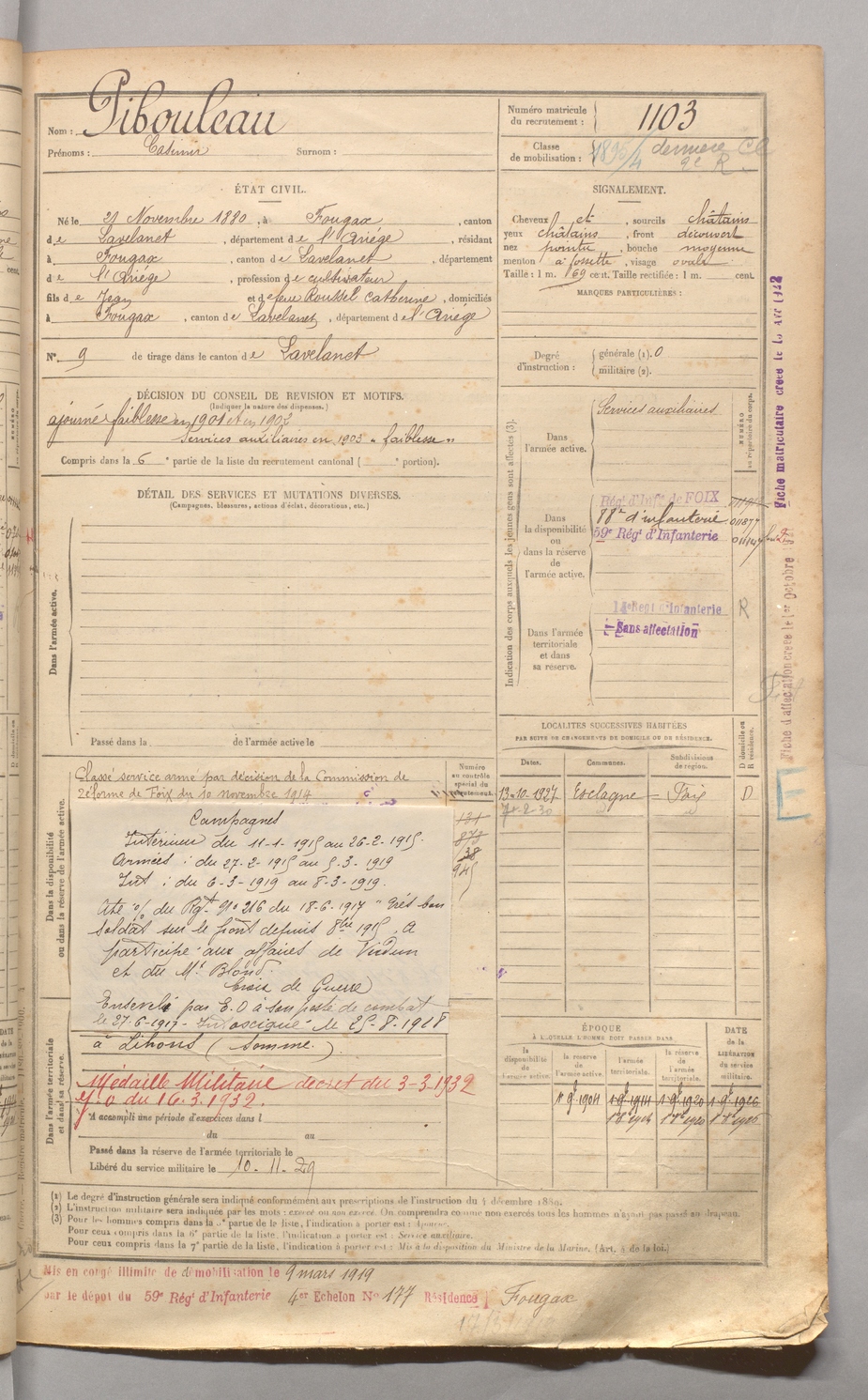 | Pibouleau | Casimir | FOIX | 129 W 4 | 1900 | Fougax-et-Barrineuf | Fougax-et-Barrineuf | 1103 |