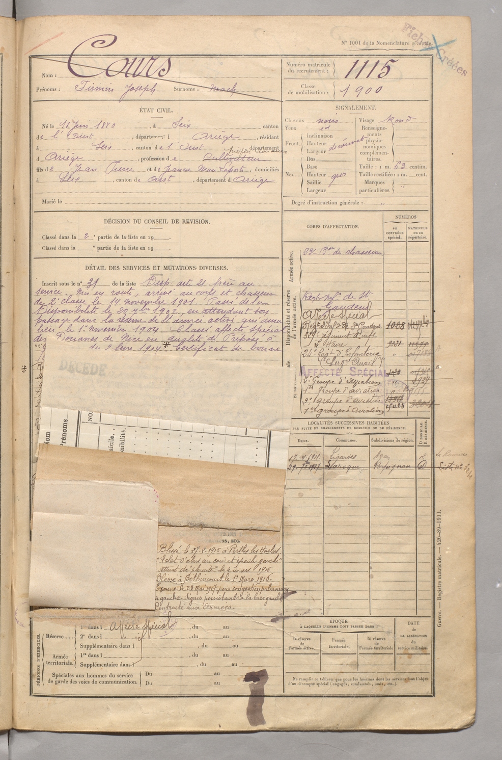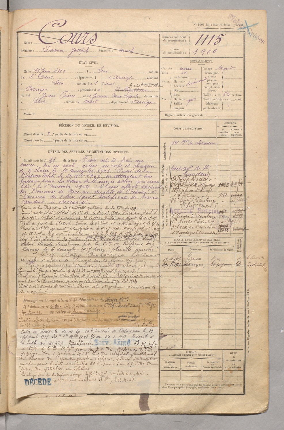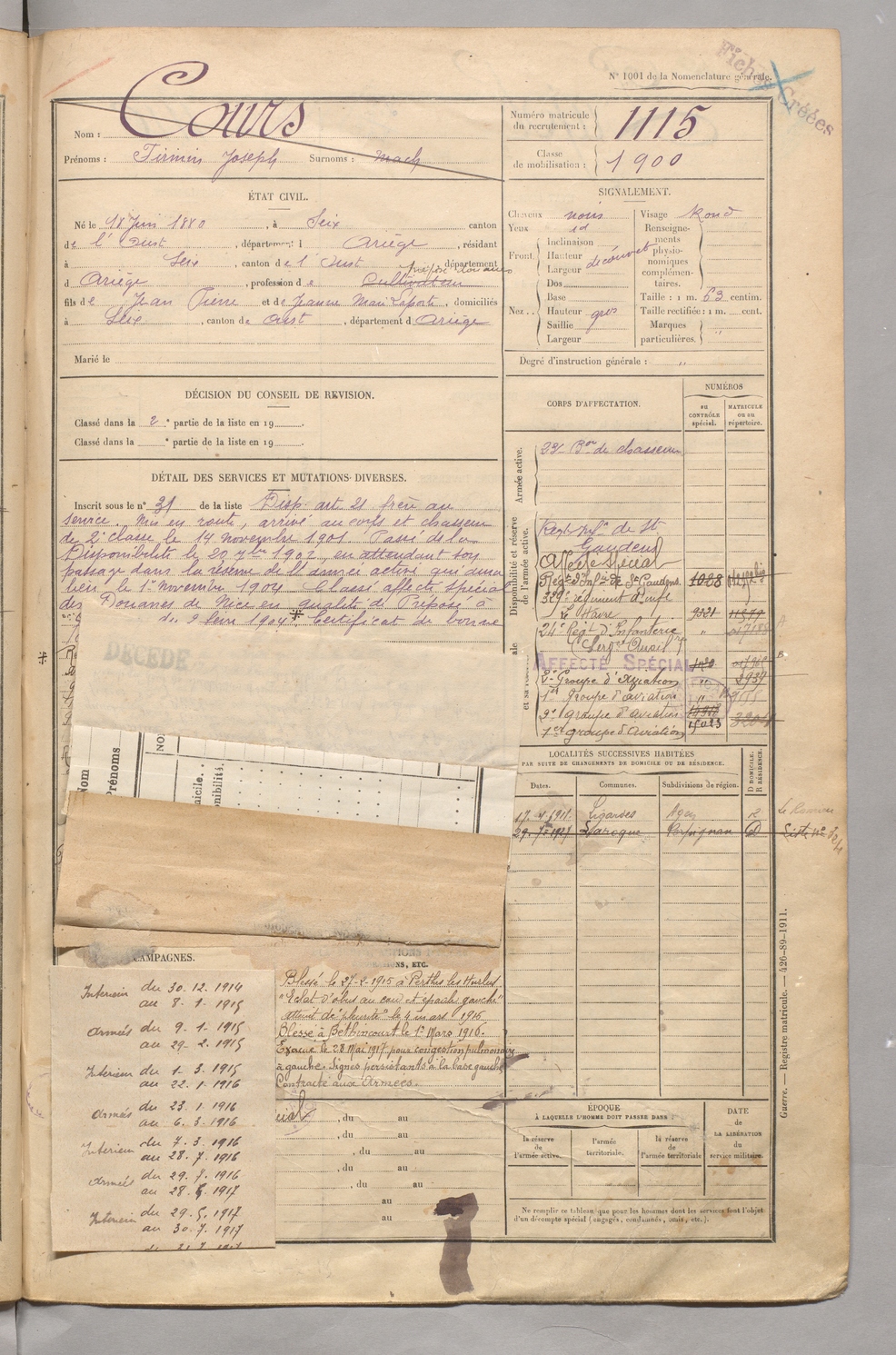 | Cours | Firmin Joseph dit Mach | FOIX | 129 W 5 | 1900 | Seix | Seix | 1115 |