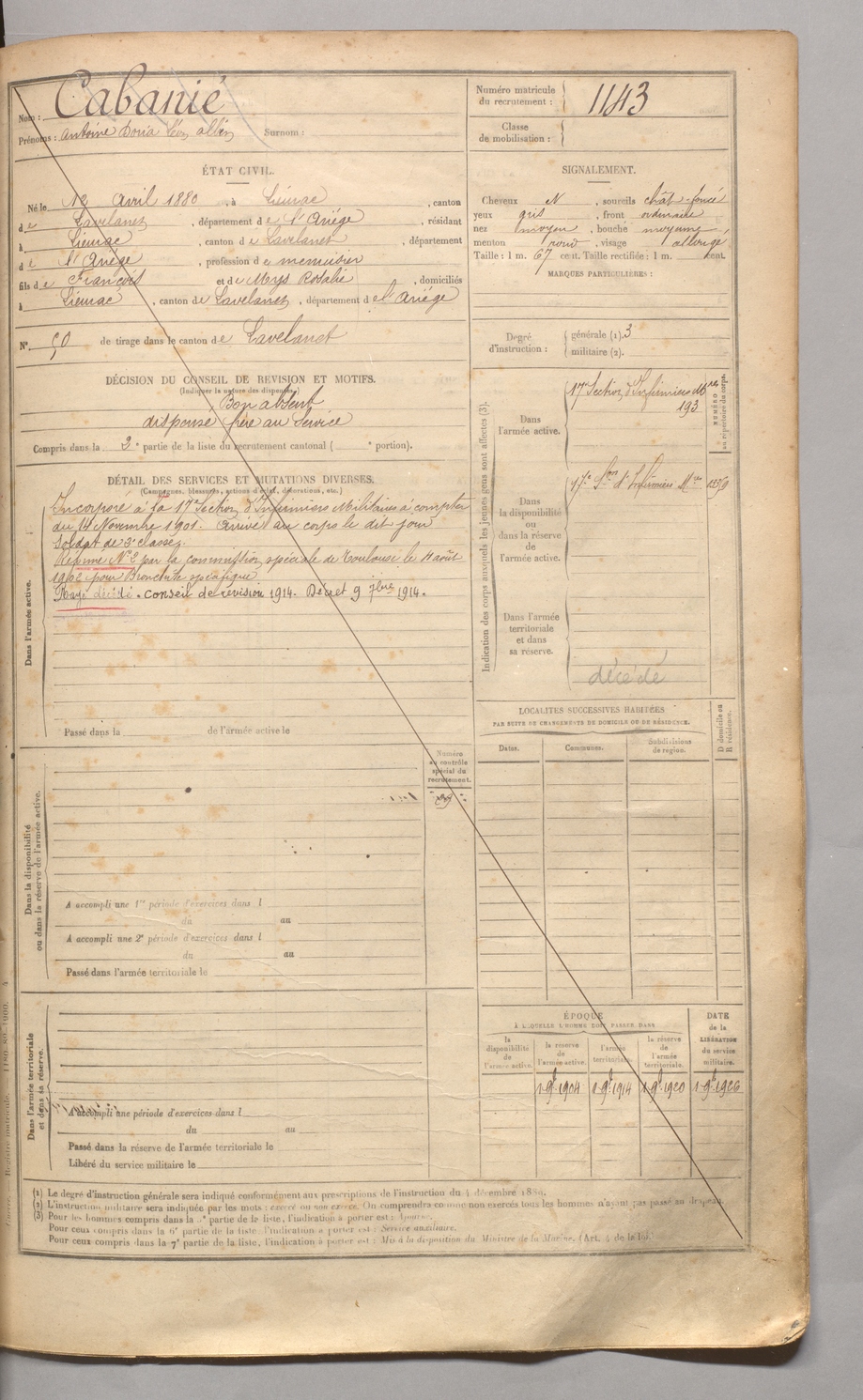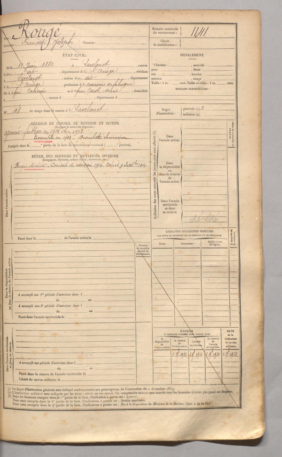 | Rougé | François Joseph | FOIX | 129 W 4 | 1900 | Lavelanet | Lavelanet | 1141 |