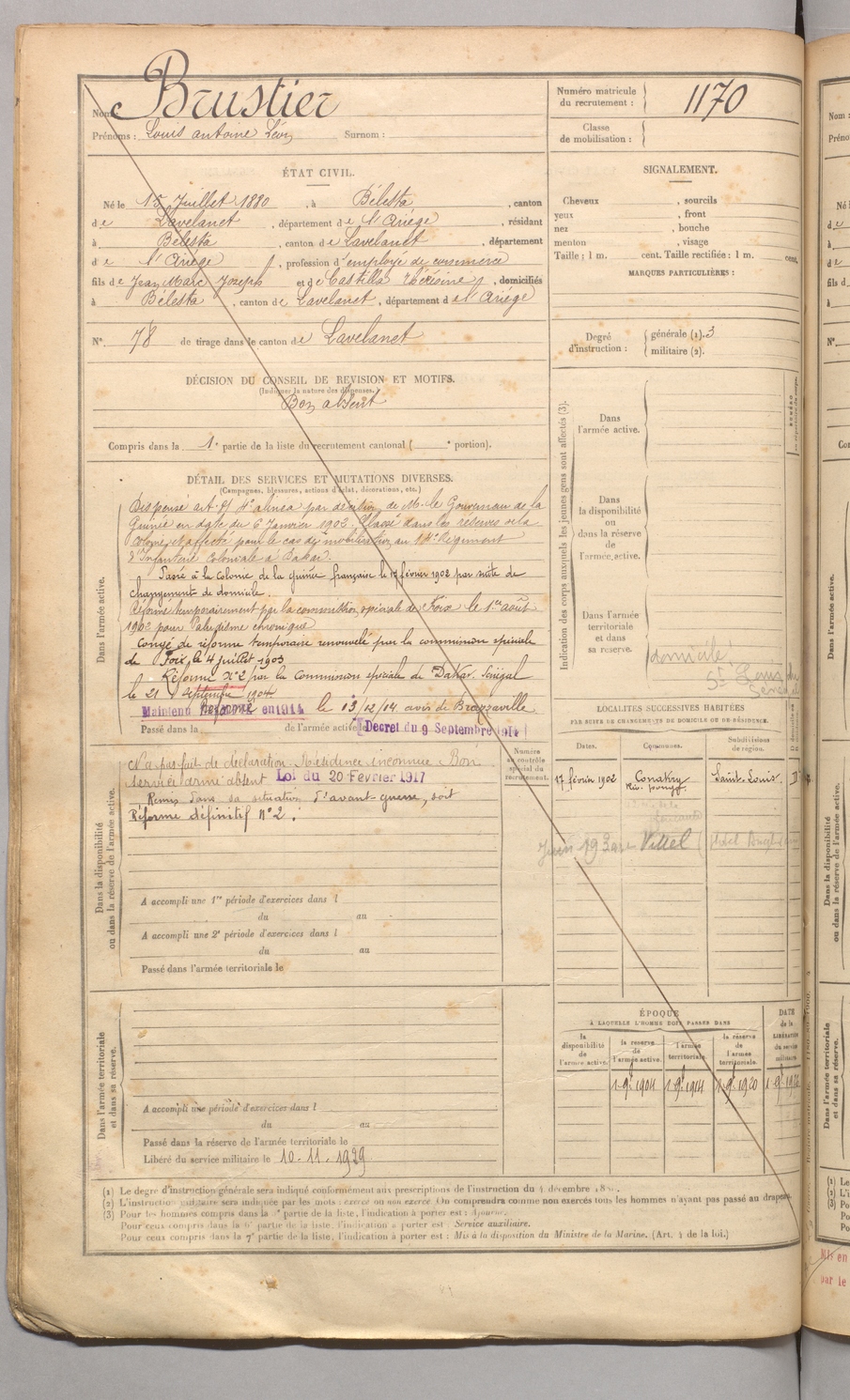 | Brustier | Louis Antoine Léon | FOIX | 129 W 4 | 1900 | Bélesta | Bélesta | 1170 |