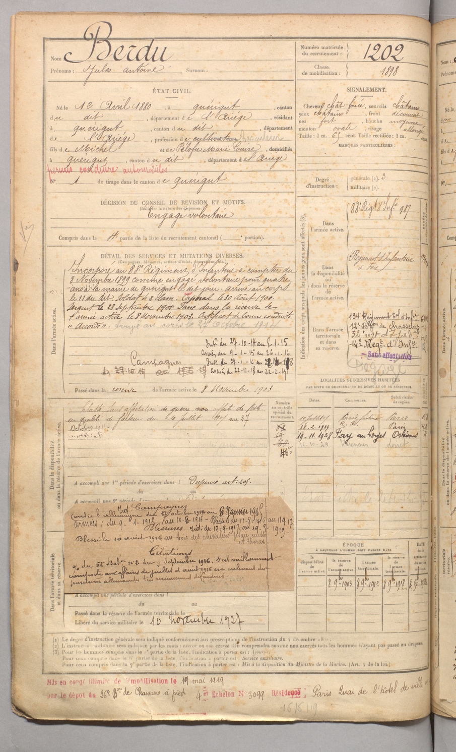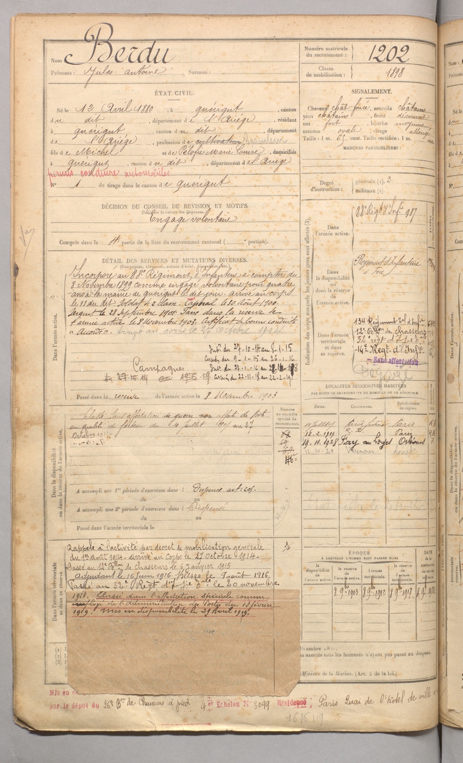 | Berdu | Jules Antoine | FOIX | 129 W 4 | 1900 | Quérigut | Quérigut | 1202 |