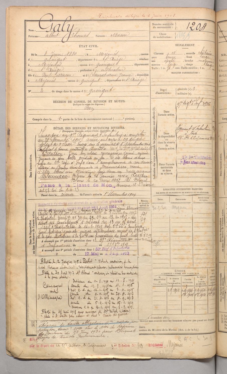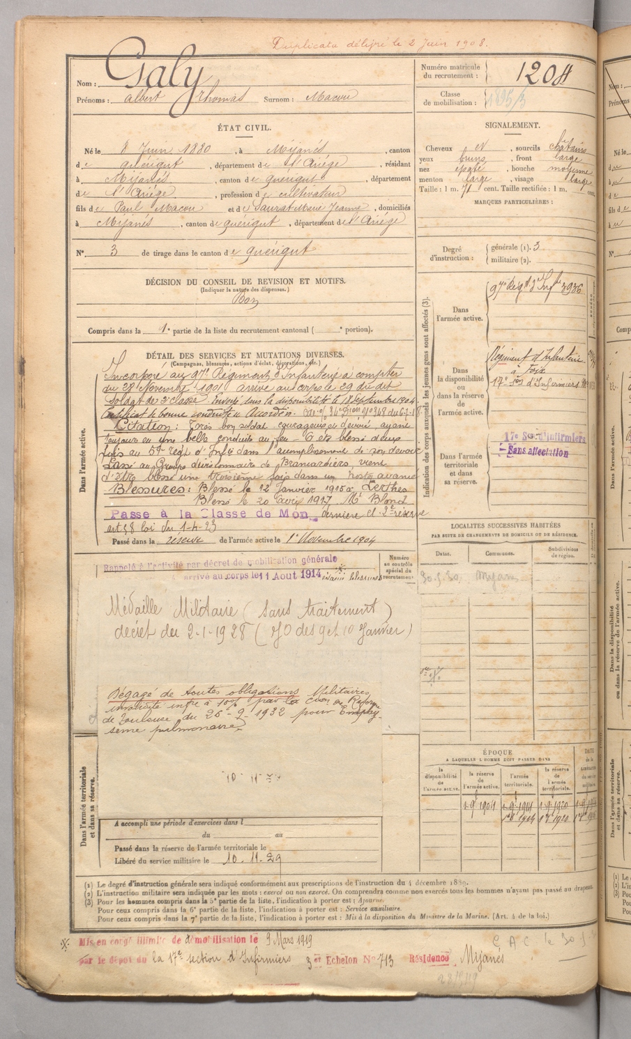 | Galy | Albert Thomas dit Macou | FOIX | 129 W 4 | 1900 | Mijanès | Mijanès | 1204 |