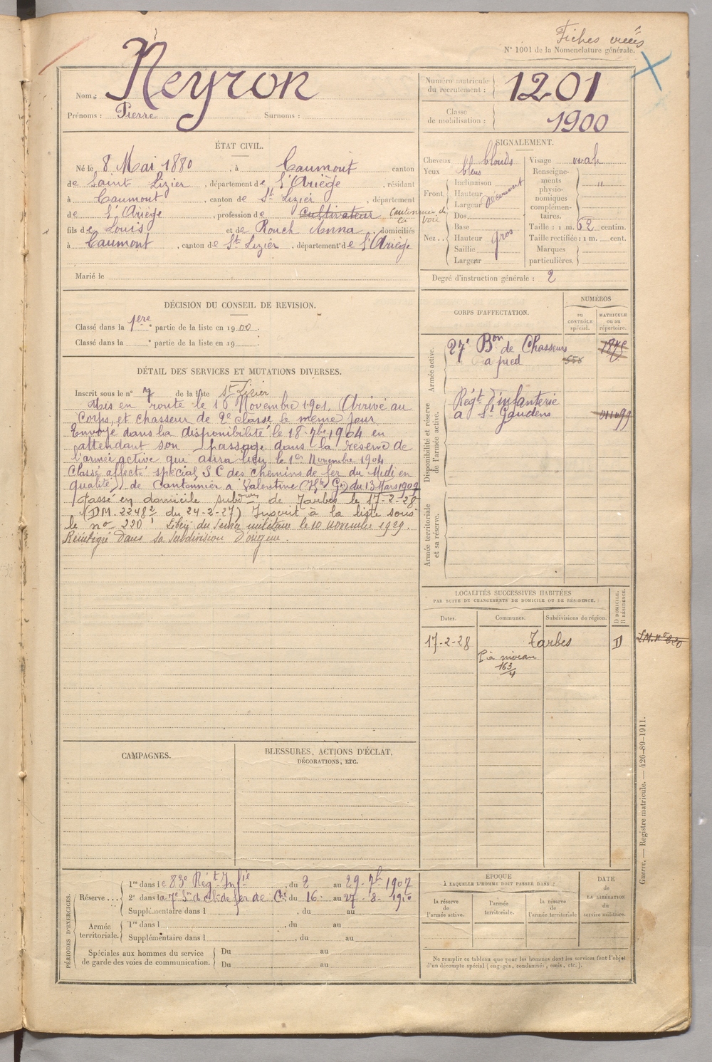 | Neyron | Pierre | FOIX | 129 W 5 | 1900 | Caumont | Caumont | 1201 |