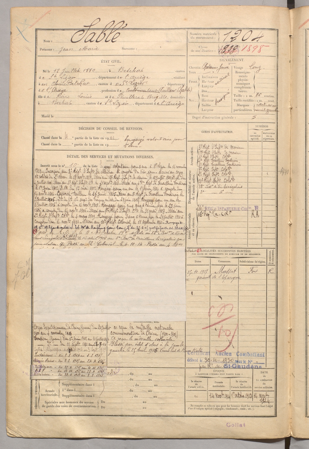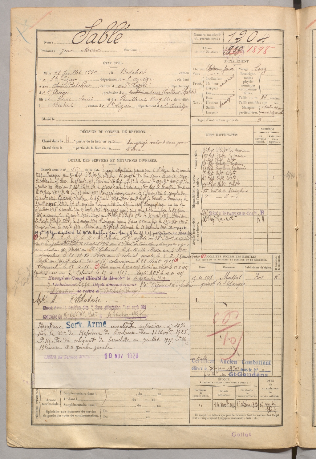 | Sablé | Jean Marie | FOIX | 129 W 5 | 1900 | Betchat | Betchat | 1204 |
