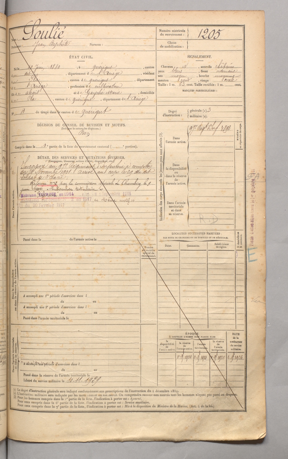 | Soulié | Jean Baptiste | FOIX | 129 W 4 | 1900 | Quérigut | Pla (Le) | 1205 |