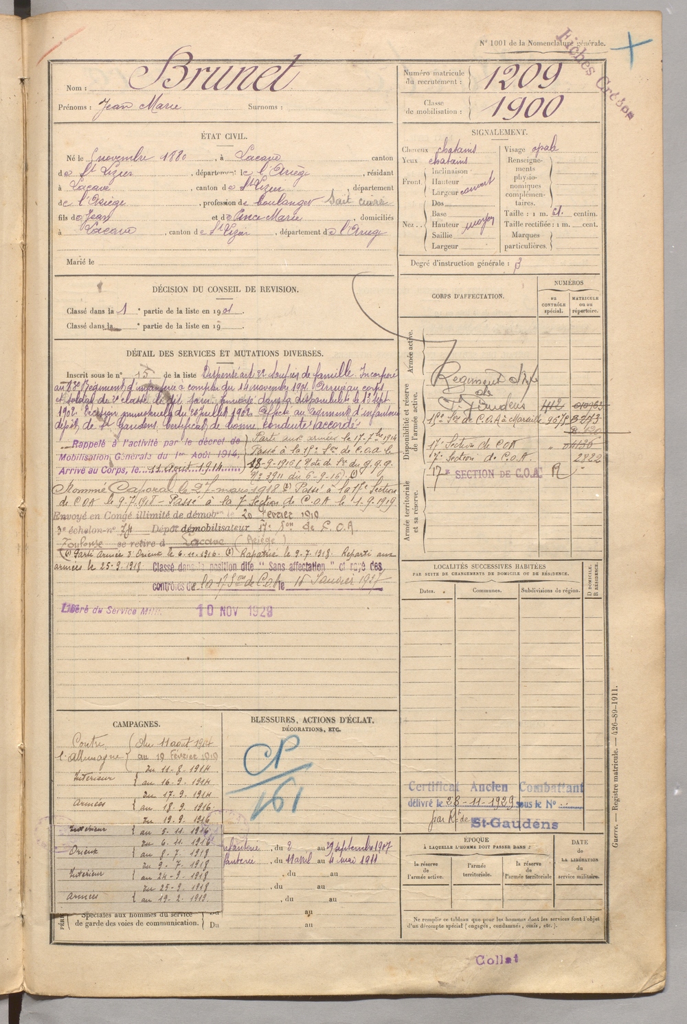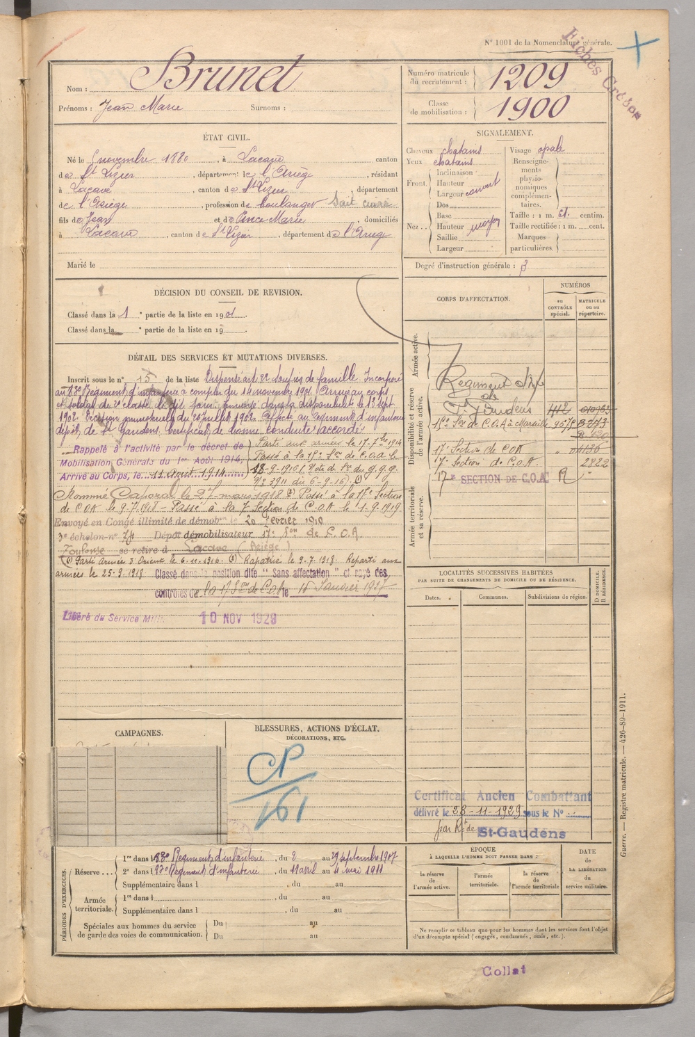 | Brunet | Jean Marie | FOIX | 129 W 5 | 1900 | Lacave | Lacave | 1209 |