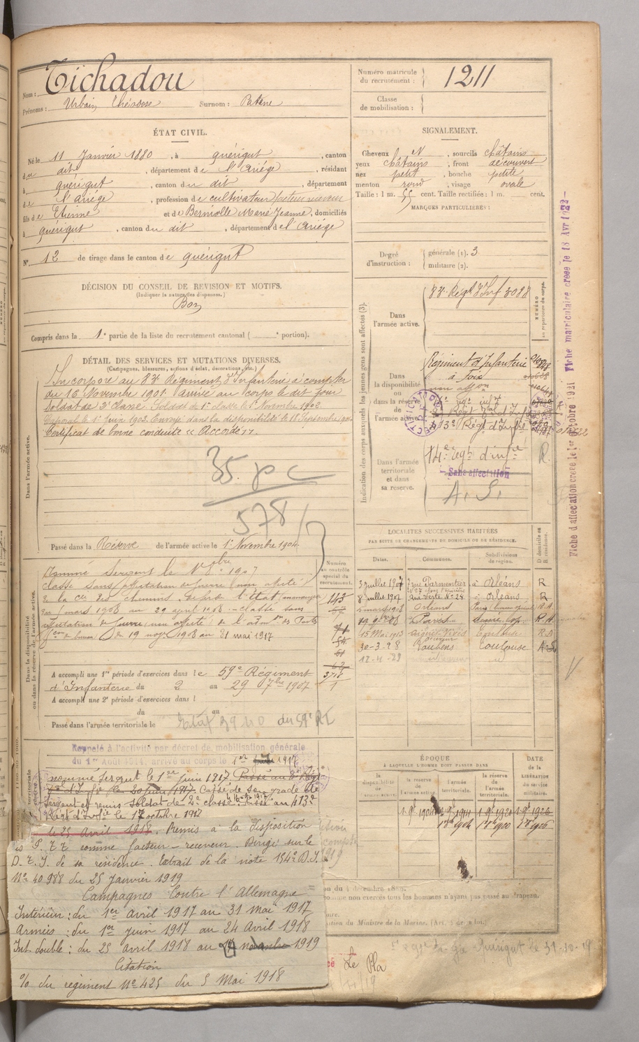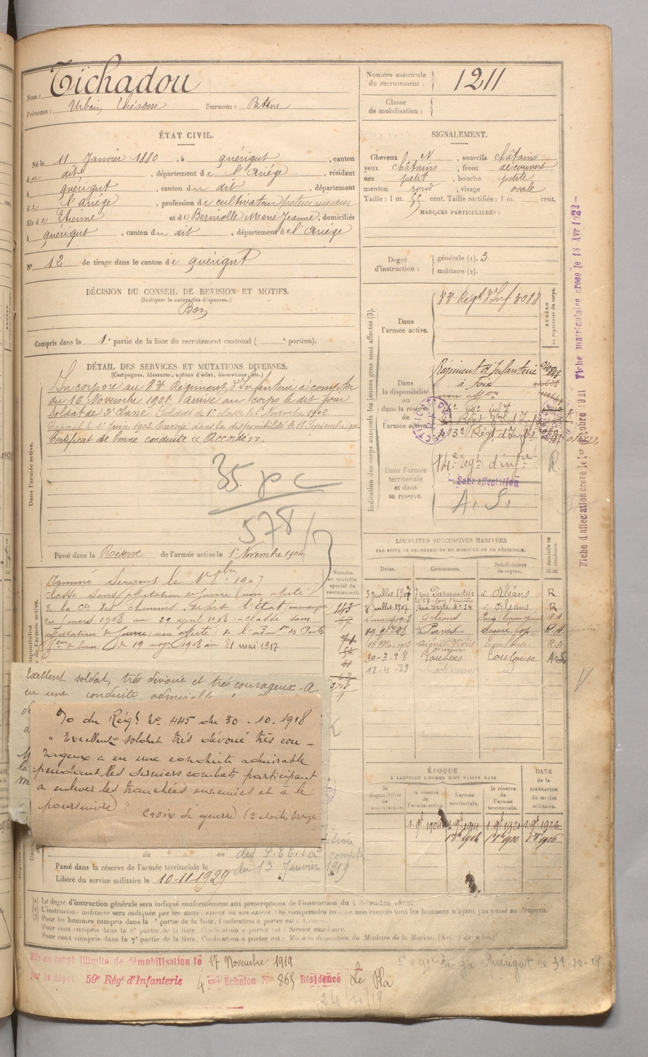 | Tichadou | Urbain Théodore dit Patene | FOIX | 129 W 4 | 1900 | Quérigut | Quérigut | 1211 |