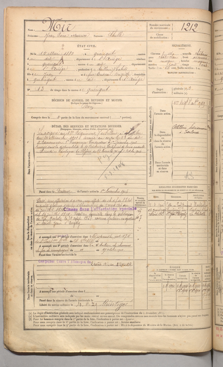 | Mir | Jean Pierre Maurice dit Chille | FOIX | 129 W 4 | 1900 | Quérigut | Quérigut | 1212 |