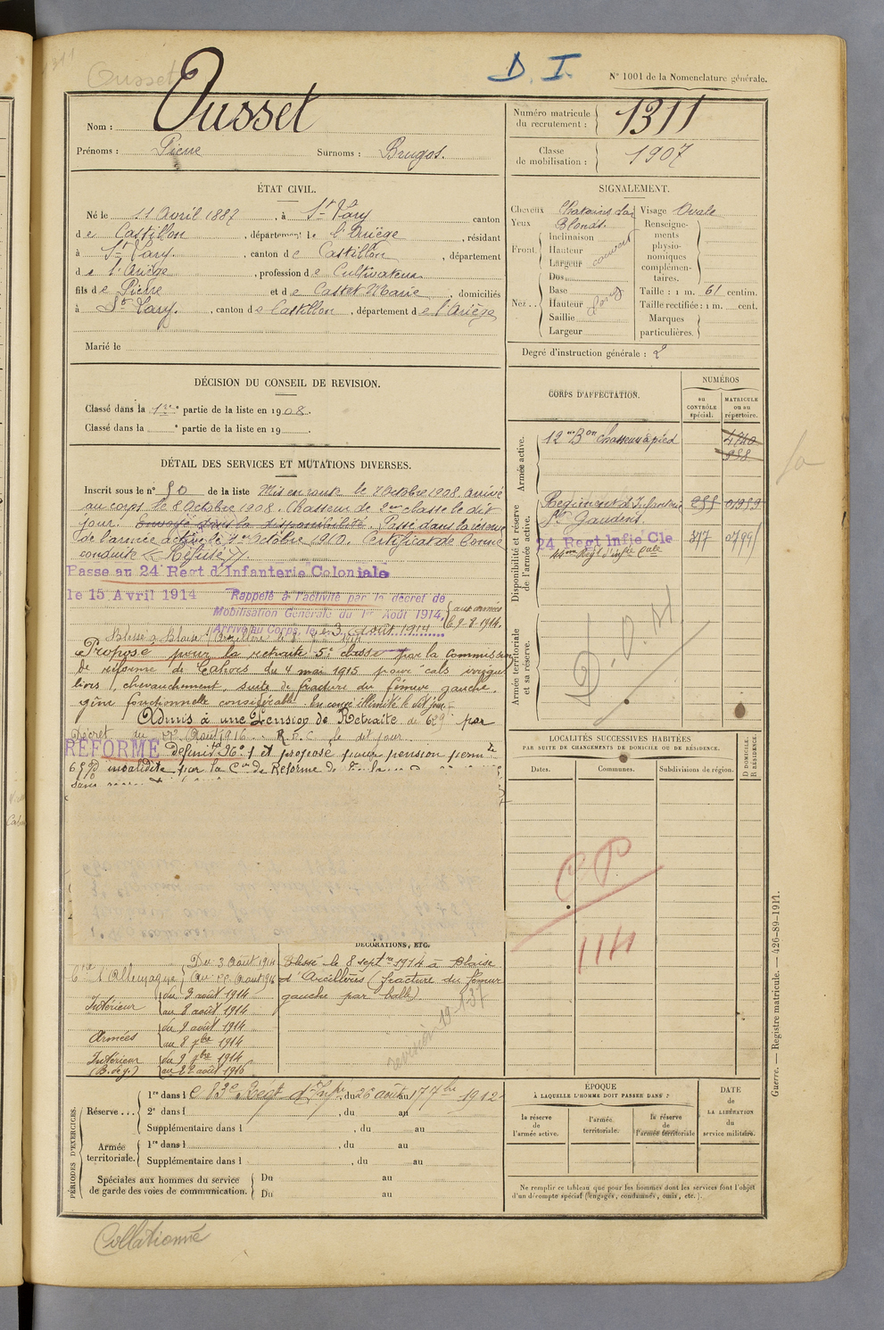 | Ousset | Pierre dit Brugos | FOIX | 129 W 40 | 1907 | Saint-Lary | Saint-Lary | 1311 |