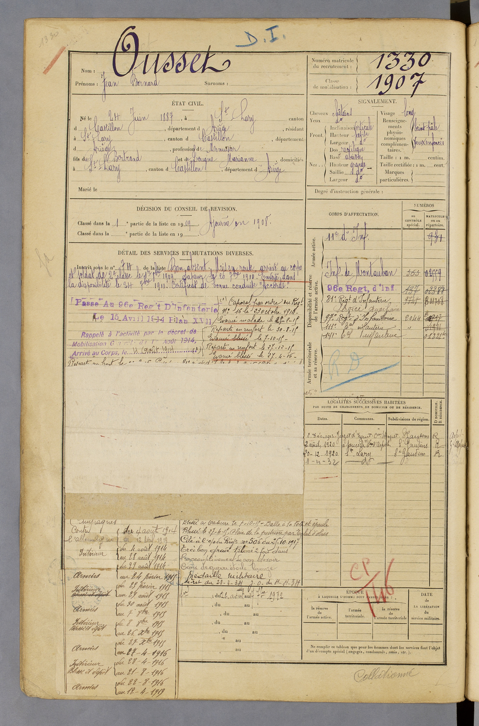 | Ousset | Jean Bernard | FOIX | 129 W 40 | 1907 | Saint-Lary | Saint-Lary | 1330 |