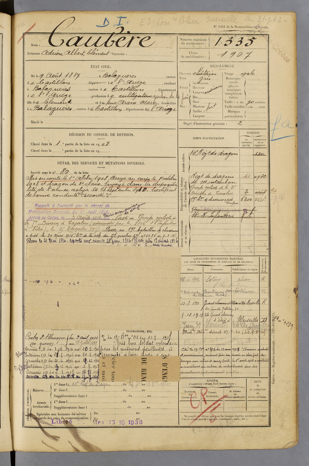 | Caubère | Adriers Albert Blément | FOIX | 129 W 40 | 1907 | Balaguères | Balaguères | 1335 |