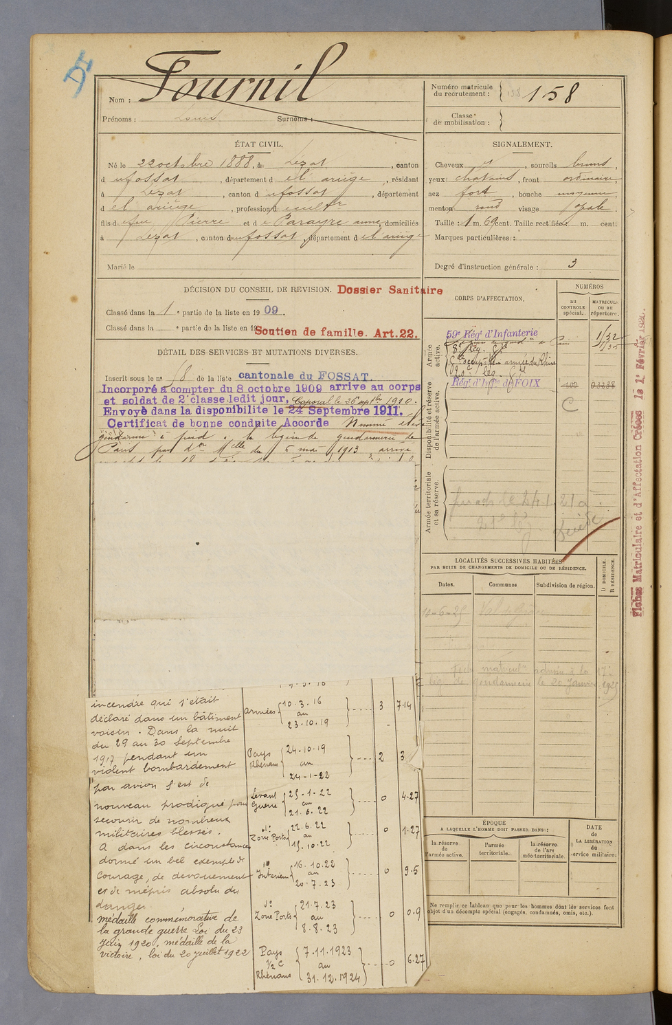 | Fournil | Louis | FOIX | 129 W 42 | 1908 | Lézat-sur-Lèze | Lézat-sur-Lèze | 158 |
