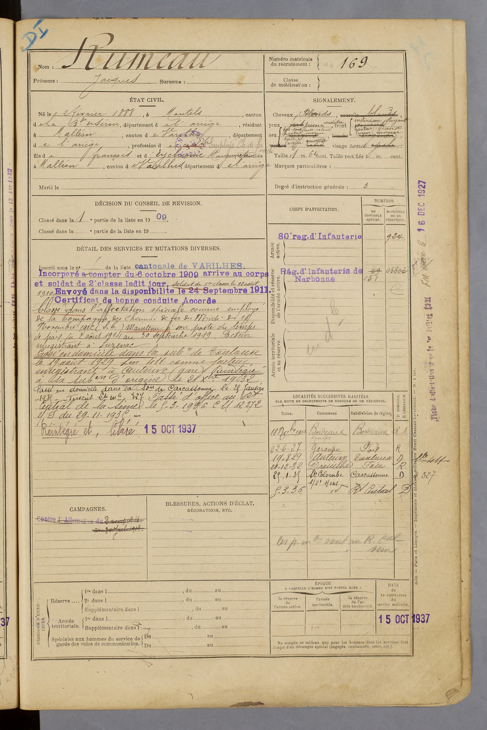 | Rumeau | Jacques | FOIX | 129 W 42 | 1908 | Montels | Malléon | 169 |