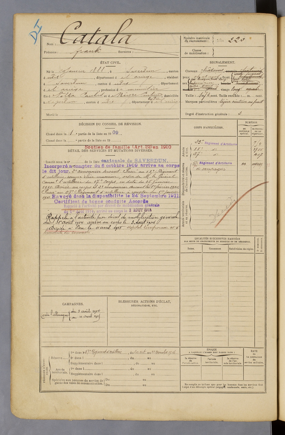 | Catala | Frank | FOIX | 129 W 42 | 1908 | Saverdun | Saverdun | 220 |