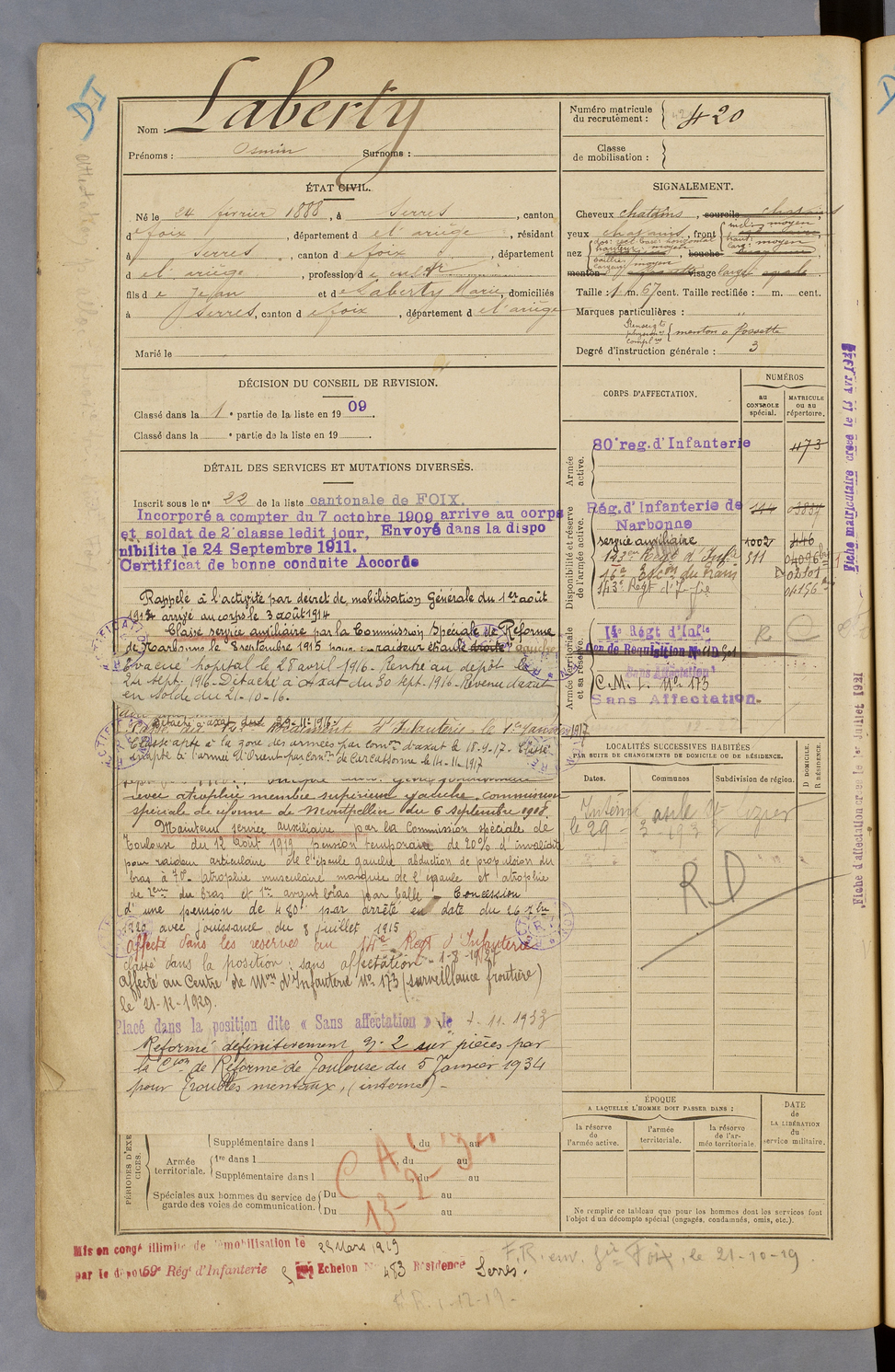 | Laberty | Osmin | FOIX | 129 W 42 | 1908 | Serres-sur-Arget | Serres-sur-Arget | 420 |