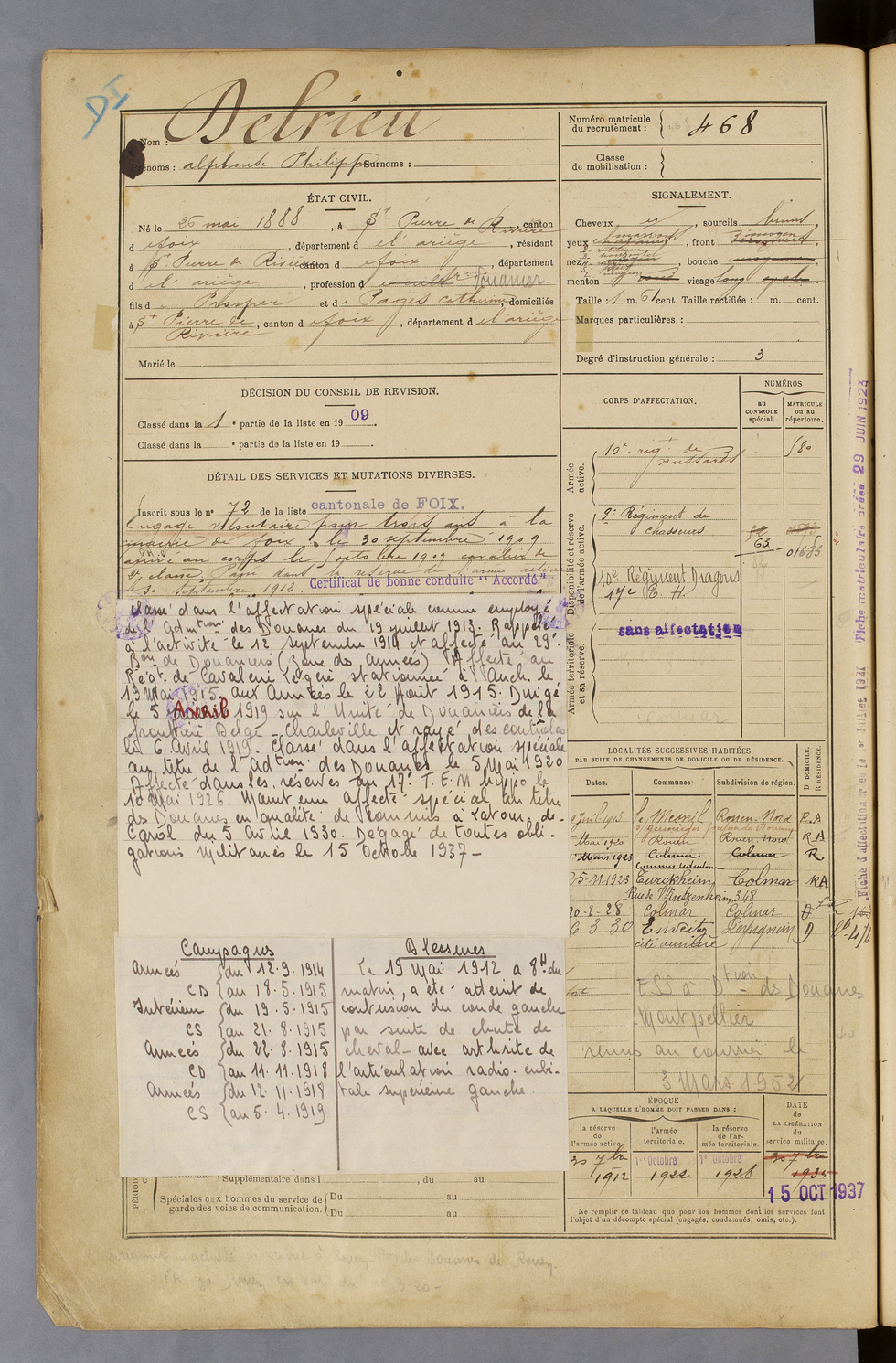| Delrieu | Alphonse Philippe | FOIX | 129 W 42 | 1908 | Saint-Pierre-de-Rivière | Saint-Pierre-de-Rivière | 468 |