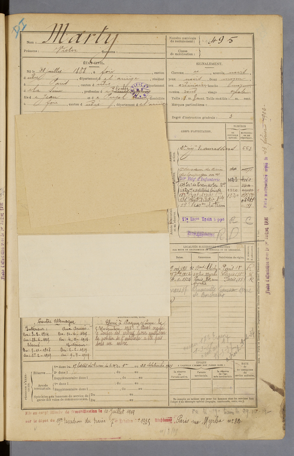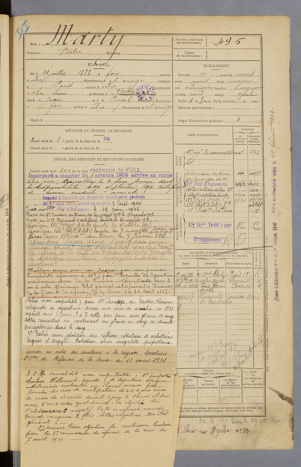 | Marty | Victor | FOIX | 129 W 42 | 1908 | Foix | Paris | 495 |