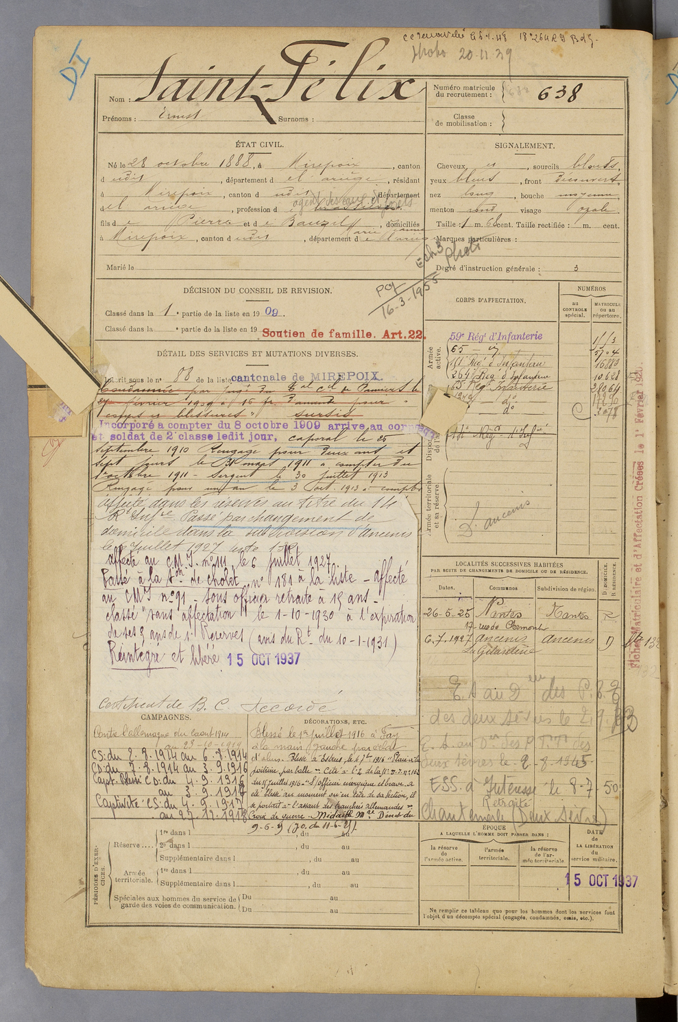 | Saint Felix | Ernest | FOIX | 129 W 43 | 1908 | Mirepoix | Mirepoix | 638 |