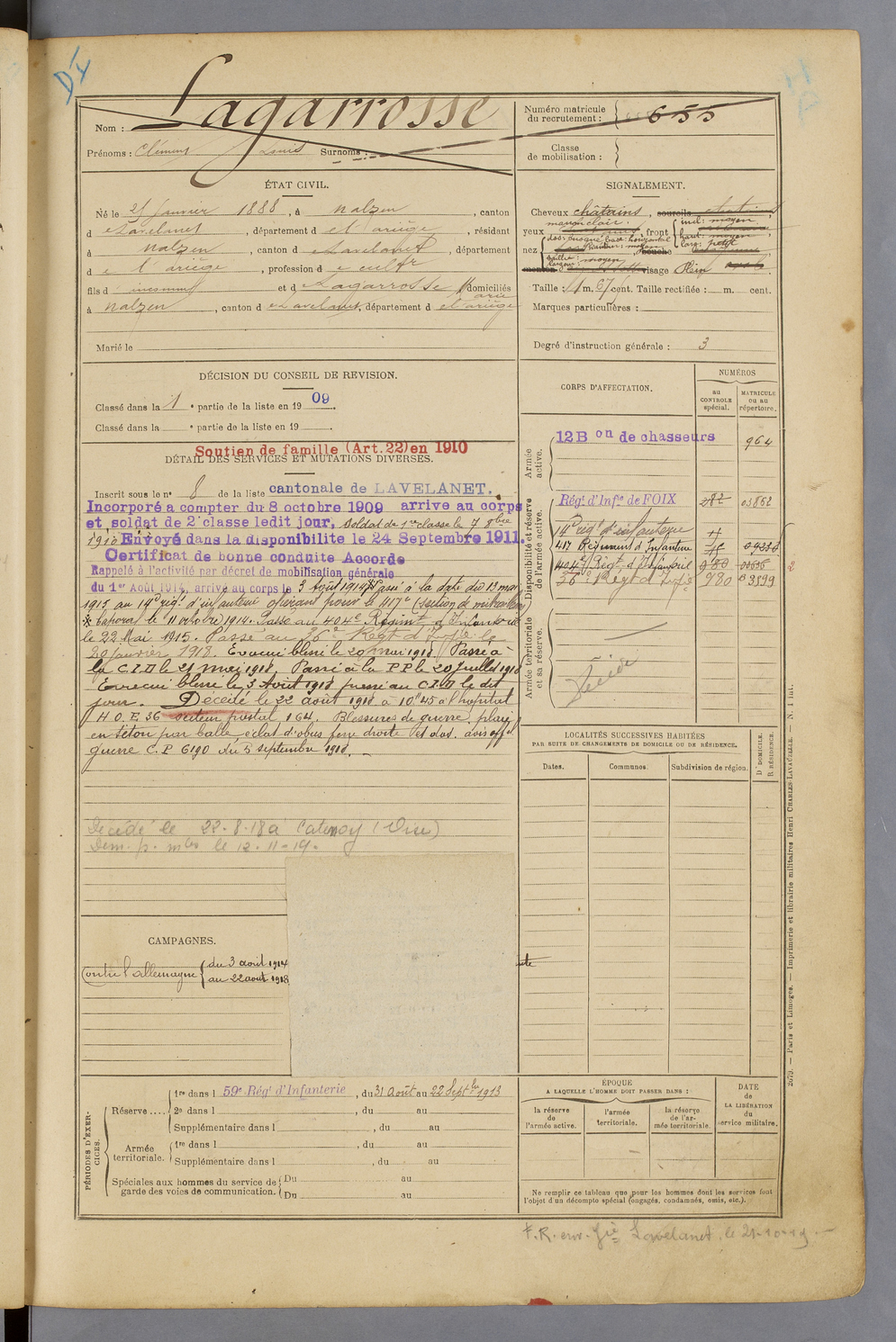 | Lagarousse | Clément Louis | FOIX | 129 W 43 | 1908 | Nalzen | Nalzen | 655 |