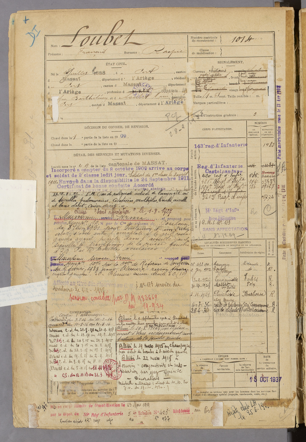 | Loubel | Francis dit Raspic | FOIX | 129 W 44 | 1908 | Port (Le) | Port (Le) | 1014 |