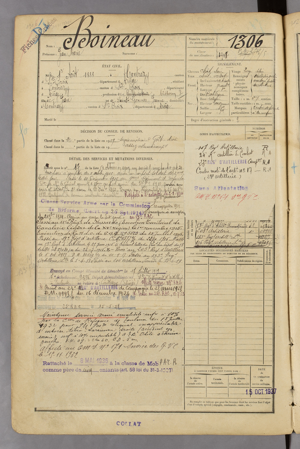 | Boineau | Jean Marie | FOIX | 129 W 45 | 1908 | Contrazy | Contrazy | 1306 |