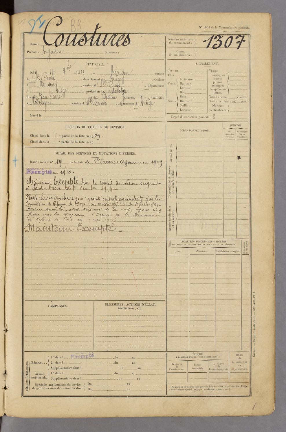 | Coustures | augustein | FOIX | 129 W 45 | 1908 | Mérigon | Mérigon | 1307 |